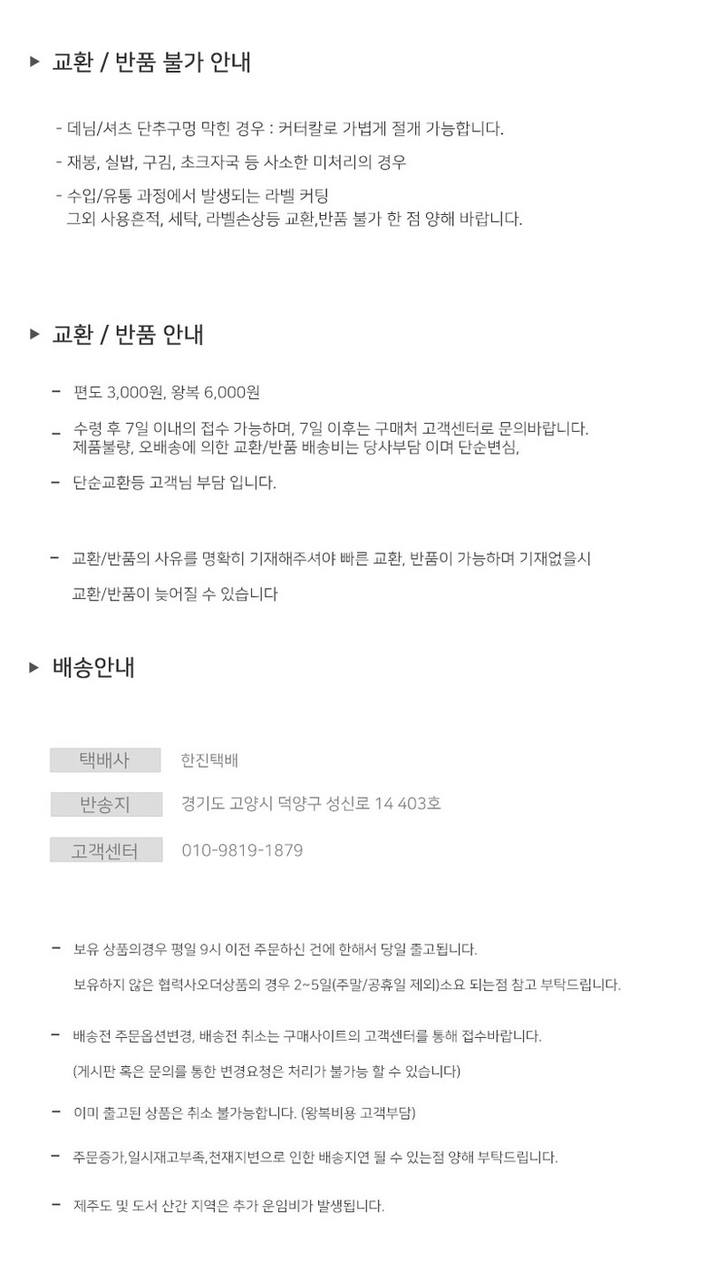 상품불량에 의한 반품, A/S, 품질보증 및 피해보상 등에 관한 사항은 소비자 분쟁해결기준(공정거래위원회 고시) 구매자가 미성년자인 경우에는 상품 구입시 법정대리인이 동의하지 아니하면 미성년자 본인 또는 법정대리인이 구매취소 할 수 있습니다. |
