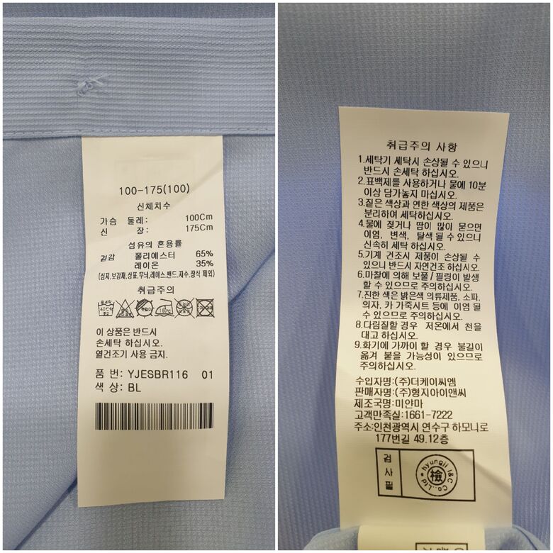 | 6. 세탁방법 및 취급시 주의사항 | 상품상세참조 |