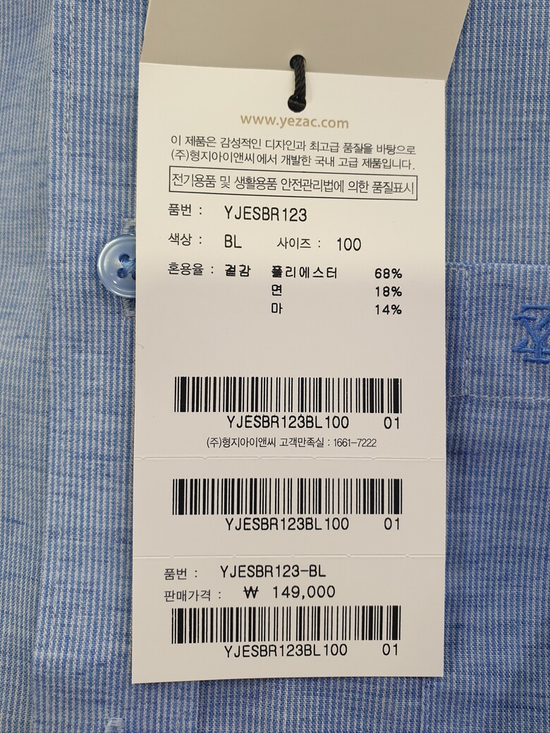 [예작셔츠] 면ㆍ린넨혼방 슬럽사 일반핏셔츠 YJESBR123BL