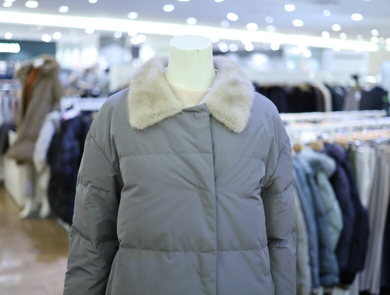 구스다운 충전재와 리얼 밍크퍼 카라넥으로