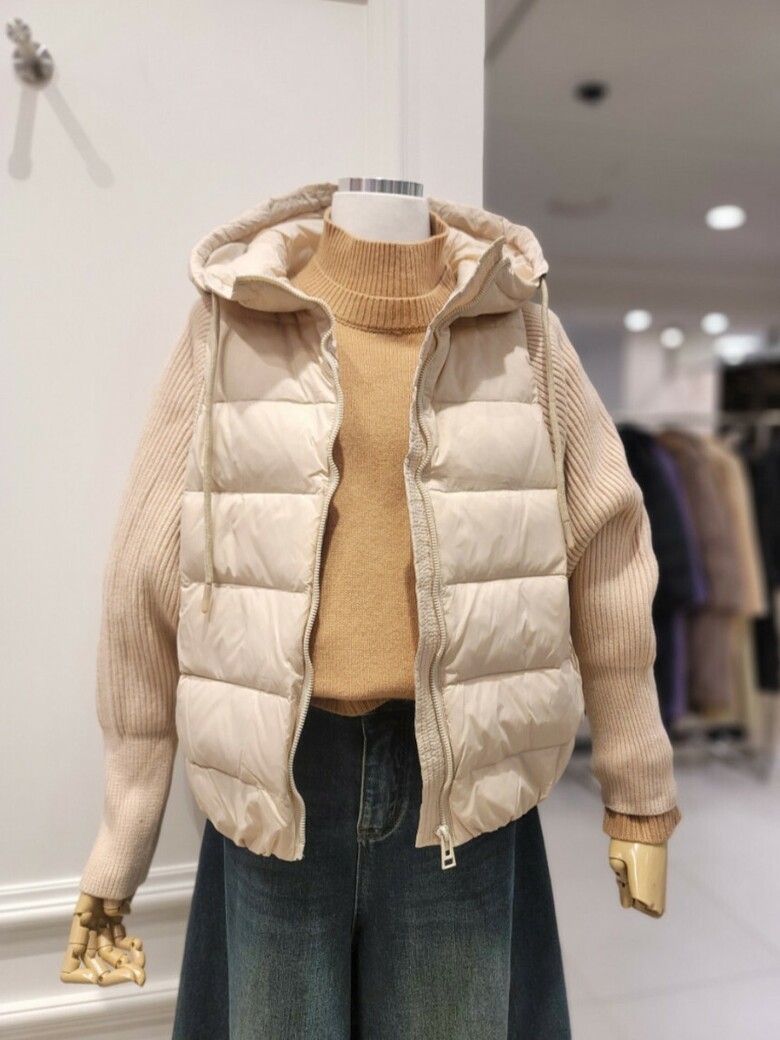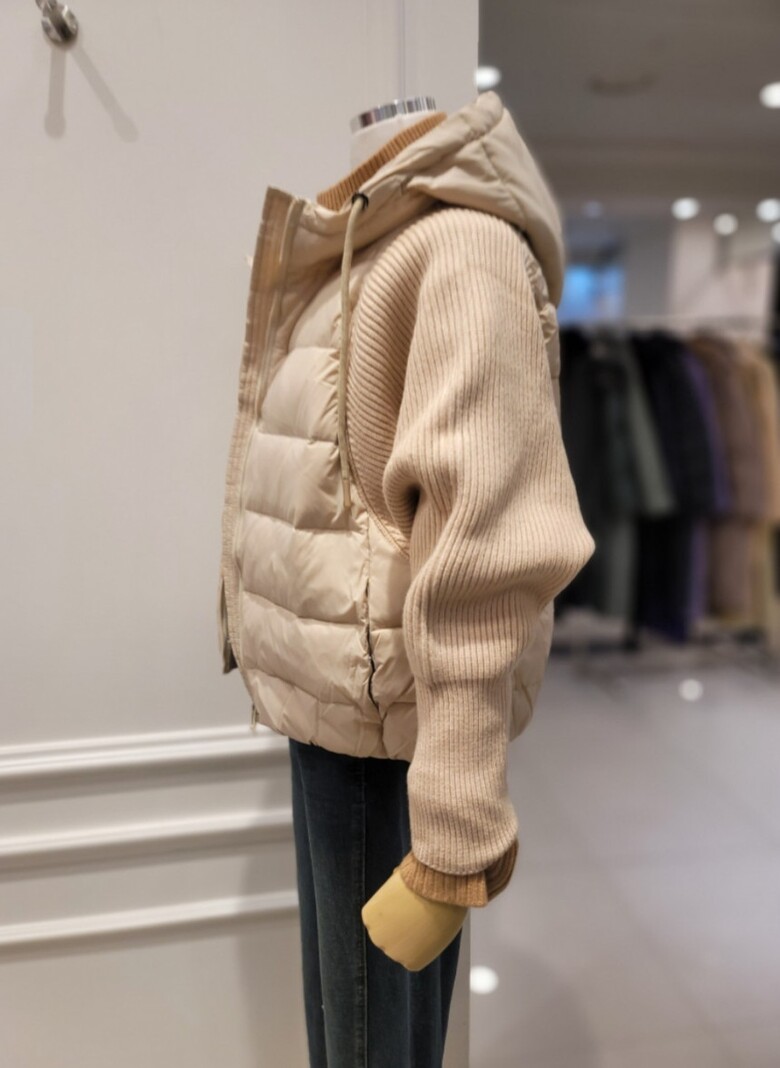 니트배색 후드 덕다운 점퍼