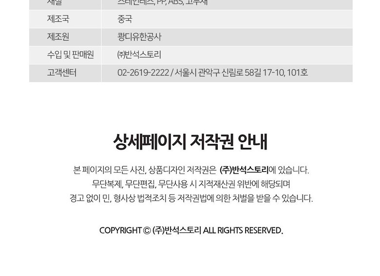 • 표시/광고와 상이, 제품 하자의 경우 수령 후 3개월 이내, 또는 그 사실을 안 날로부터 30일 이내 교환/반품 가능합니다.