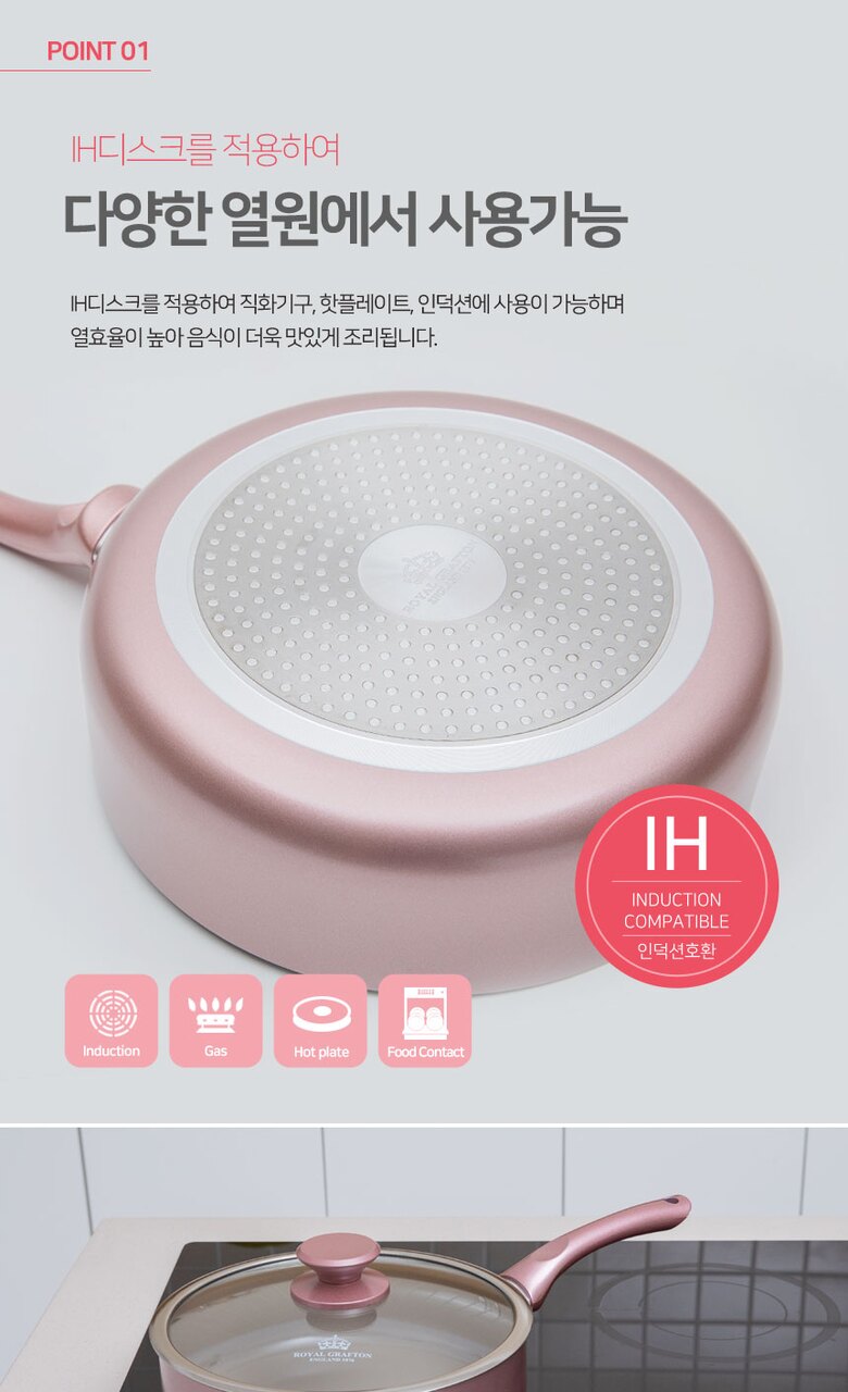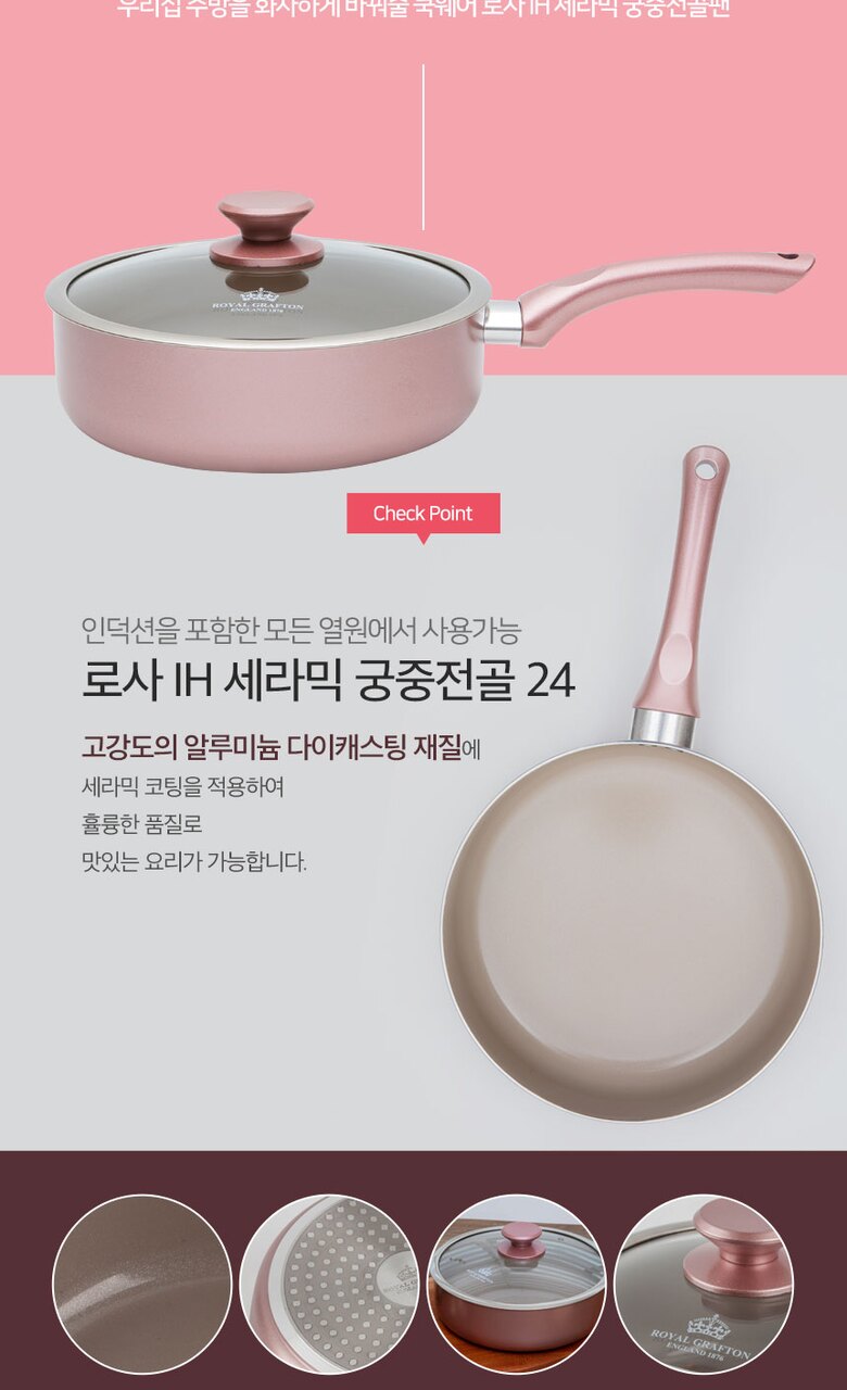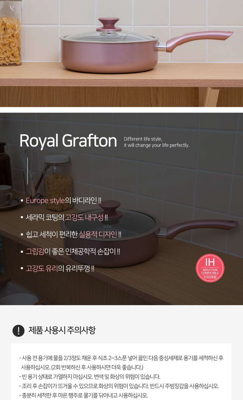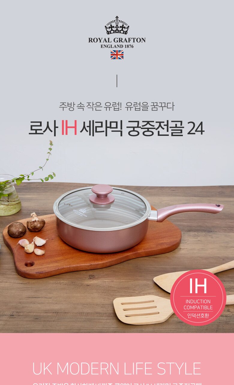 로얄그래프톤 로사 인덕션겸용(IH) 세라믹코팅 24궁중전골팬+유리뚜껑 2P