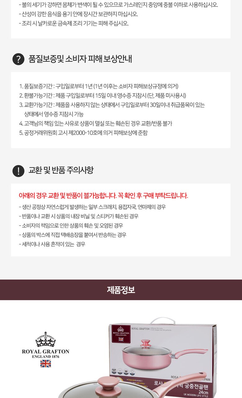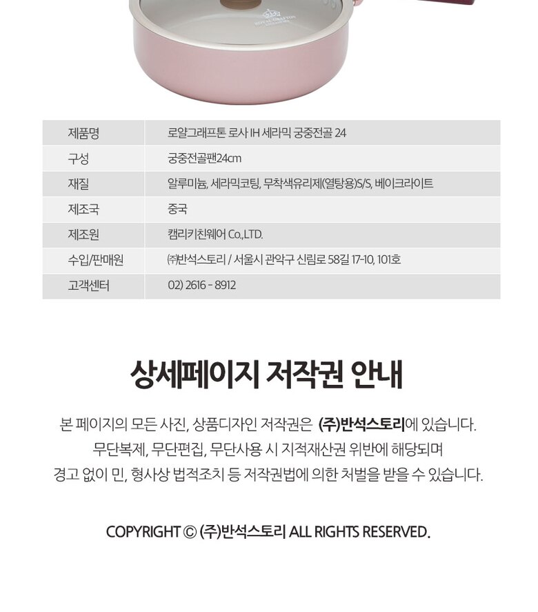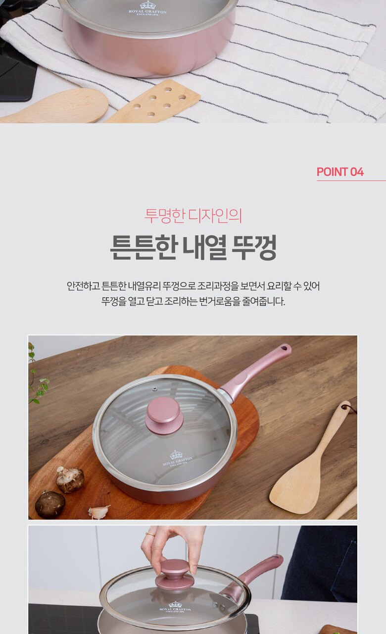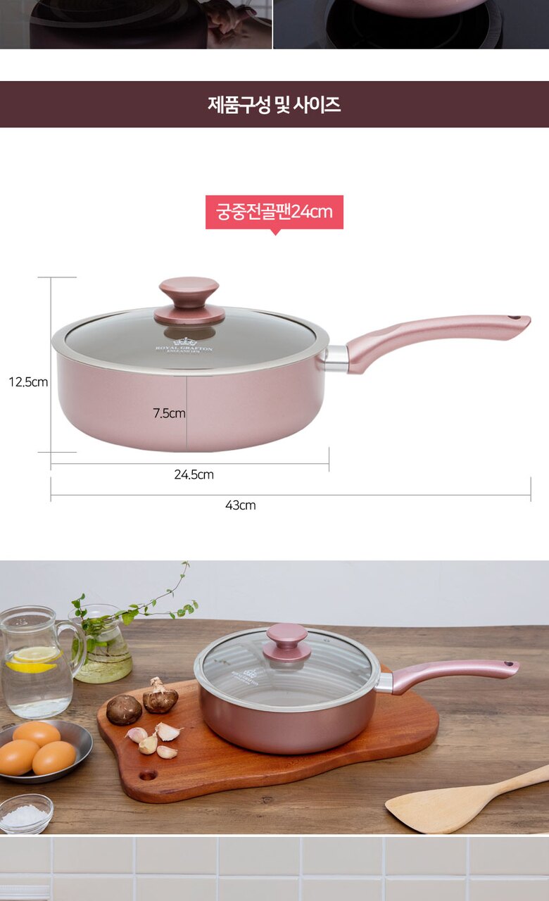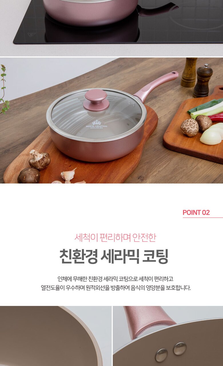 로얄그래프톤 로사 인덕션겸용(IH) 세라믹코팅 24궁중전골팬+유리뚜껑 2P