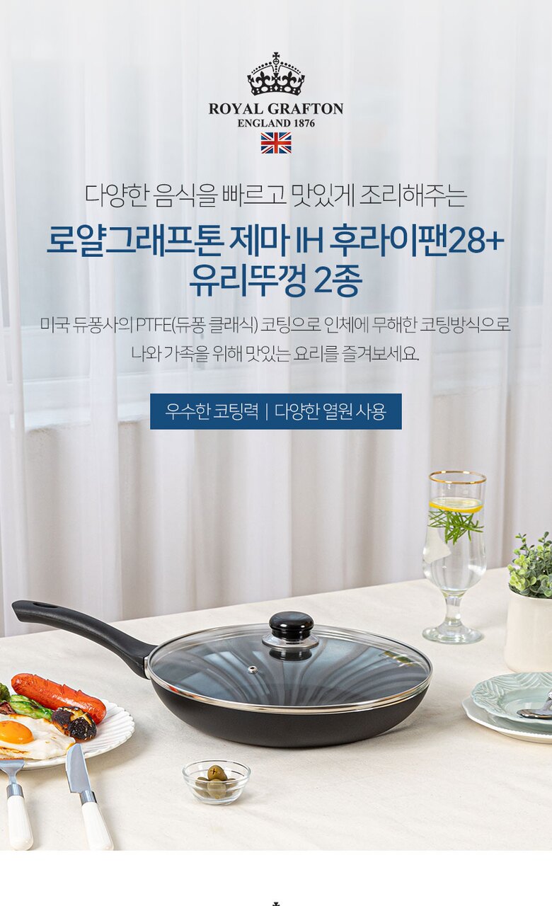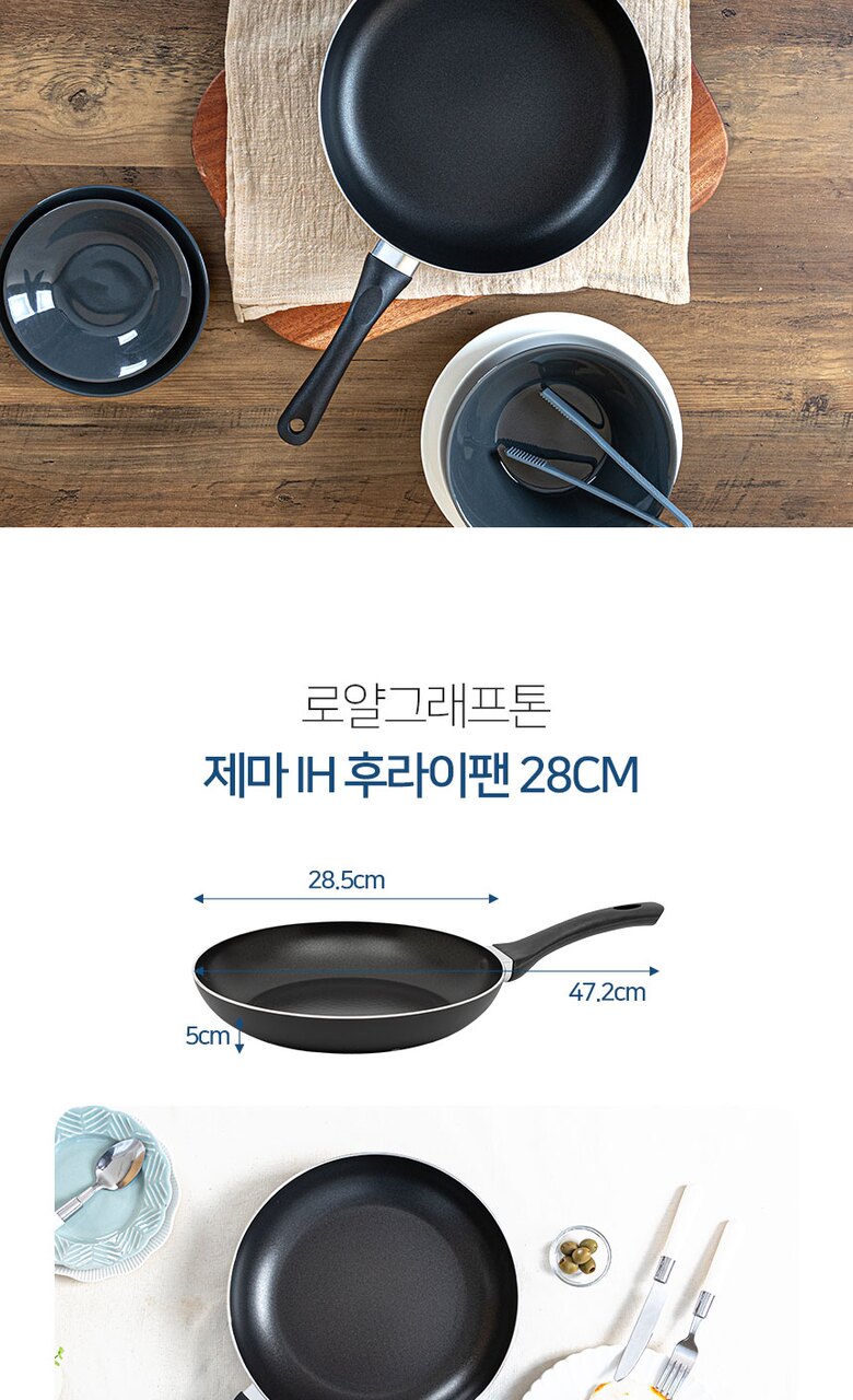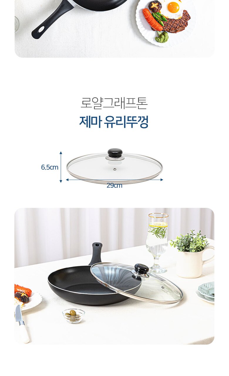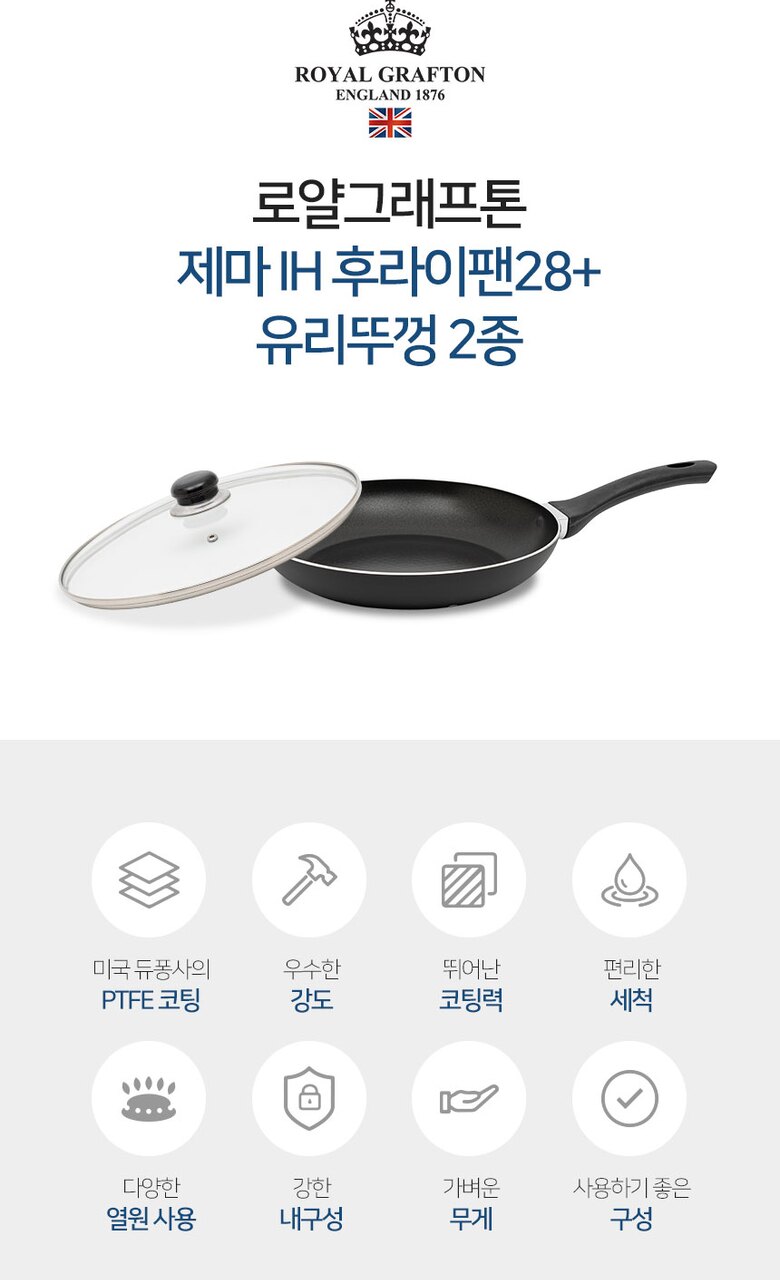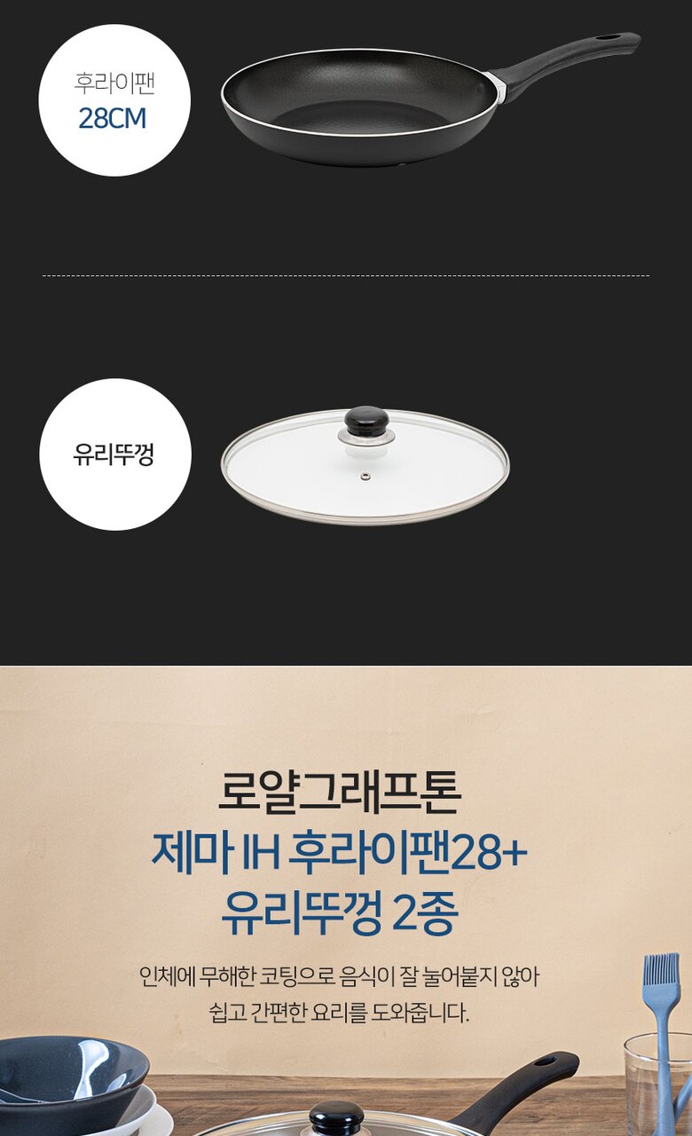 로얄그래프톤 제마 인덕션겸용(IH) 28후라이팬+유리뚜껑 2P