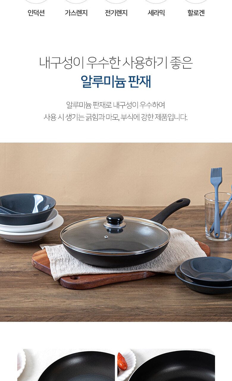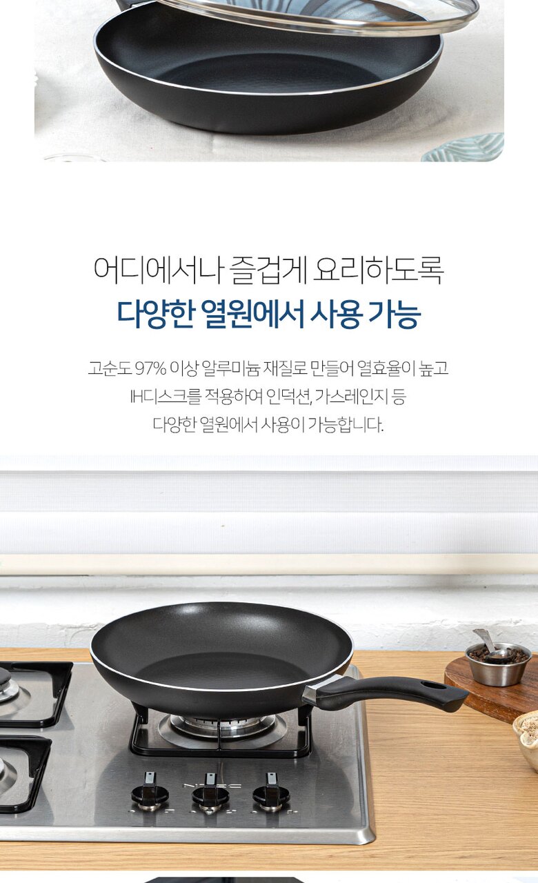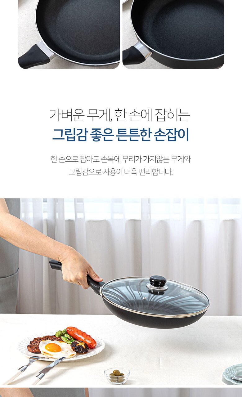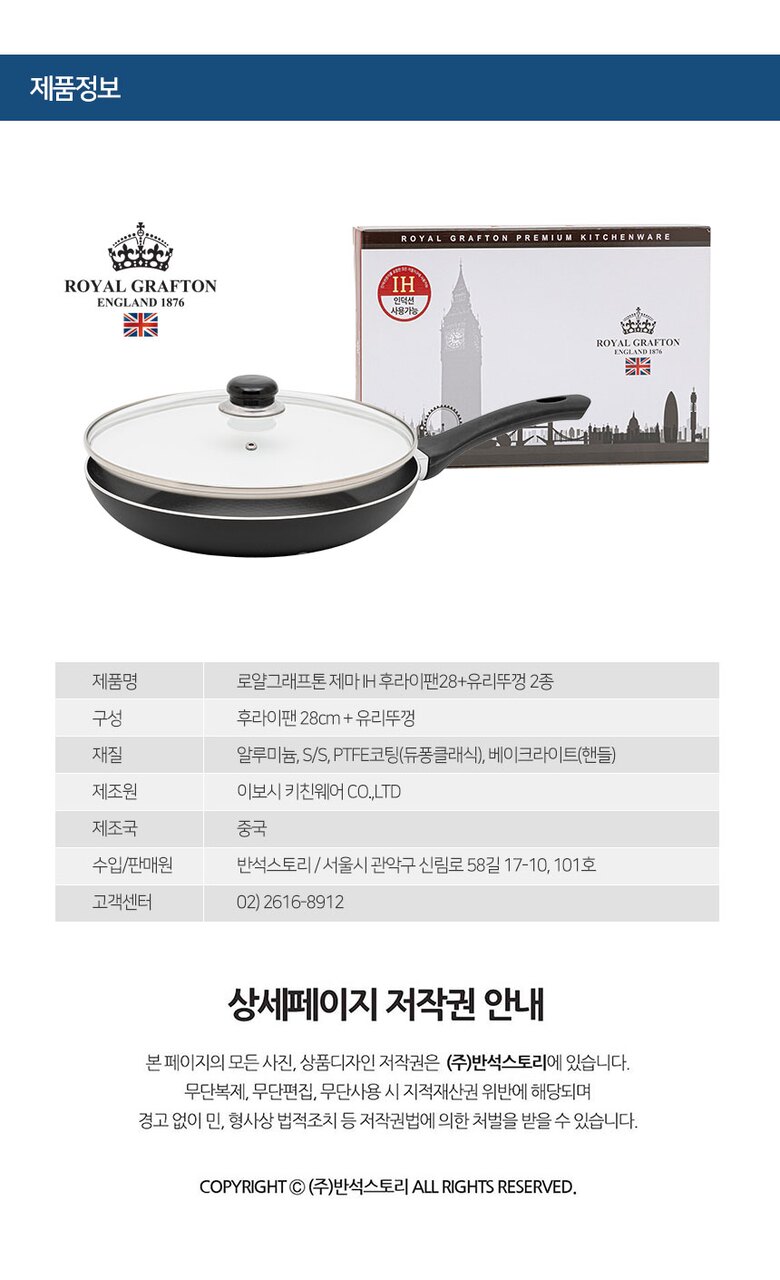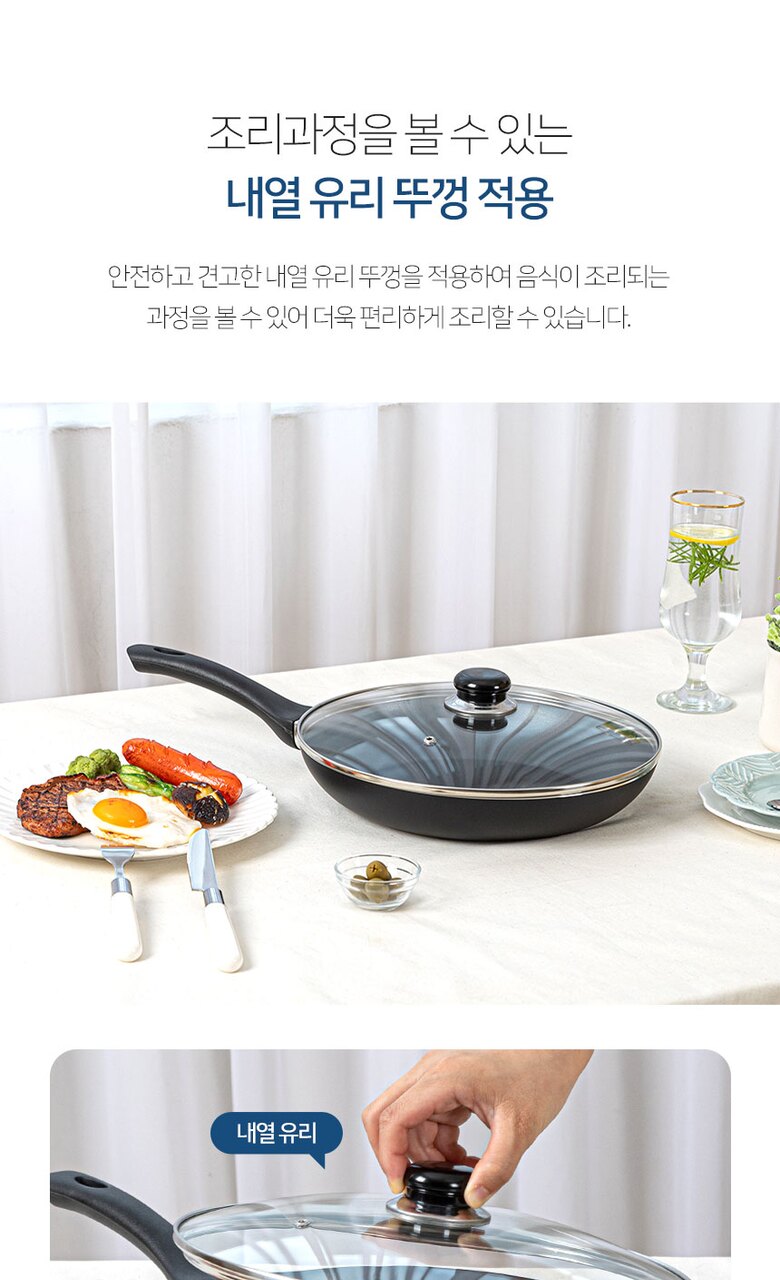 로얄그래프톤 제마 인덕션겸용(IH) 28후라이팬+유리뚜껑 2P