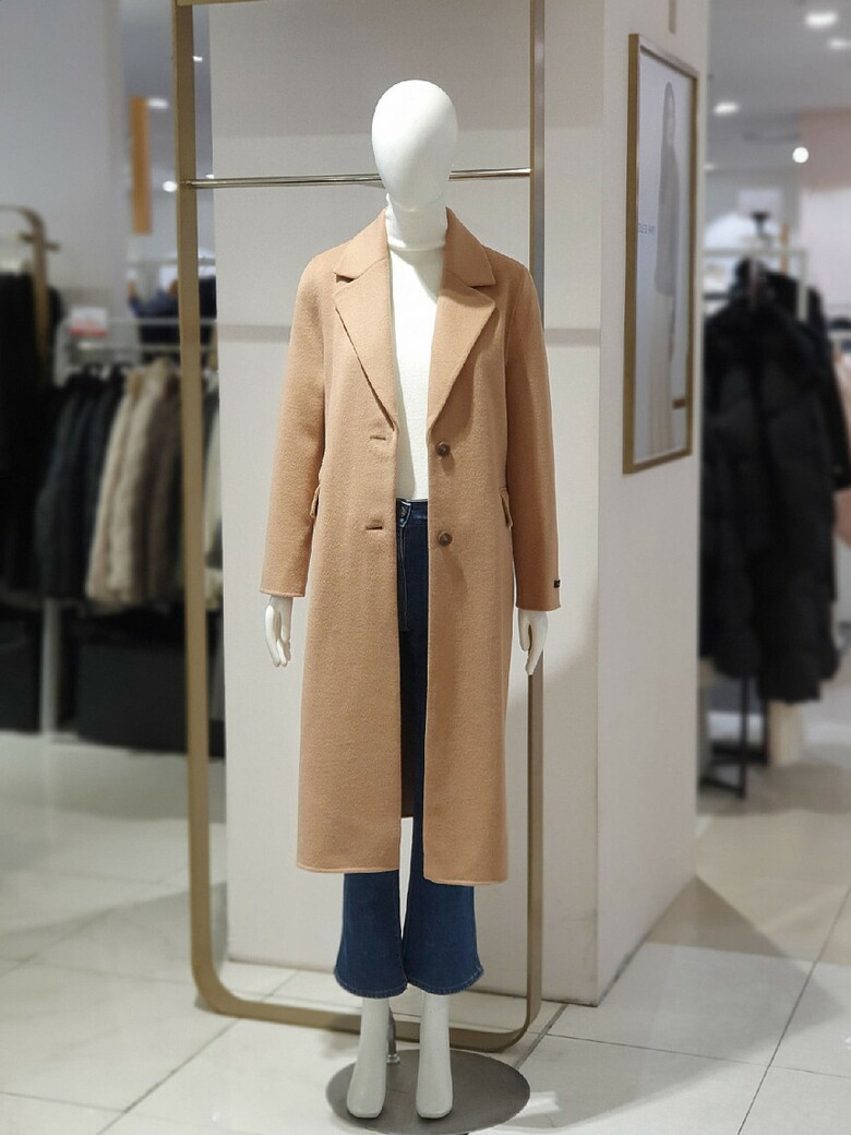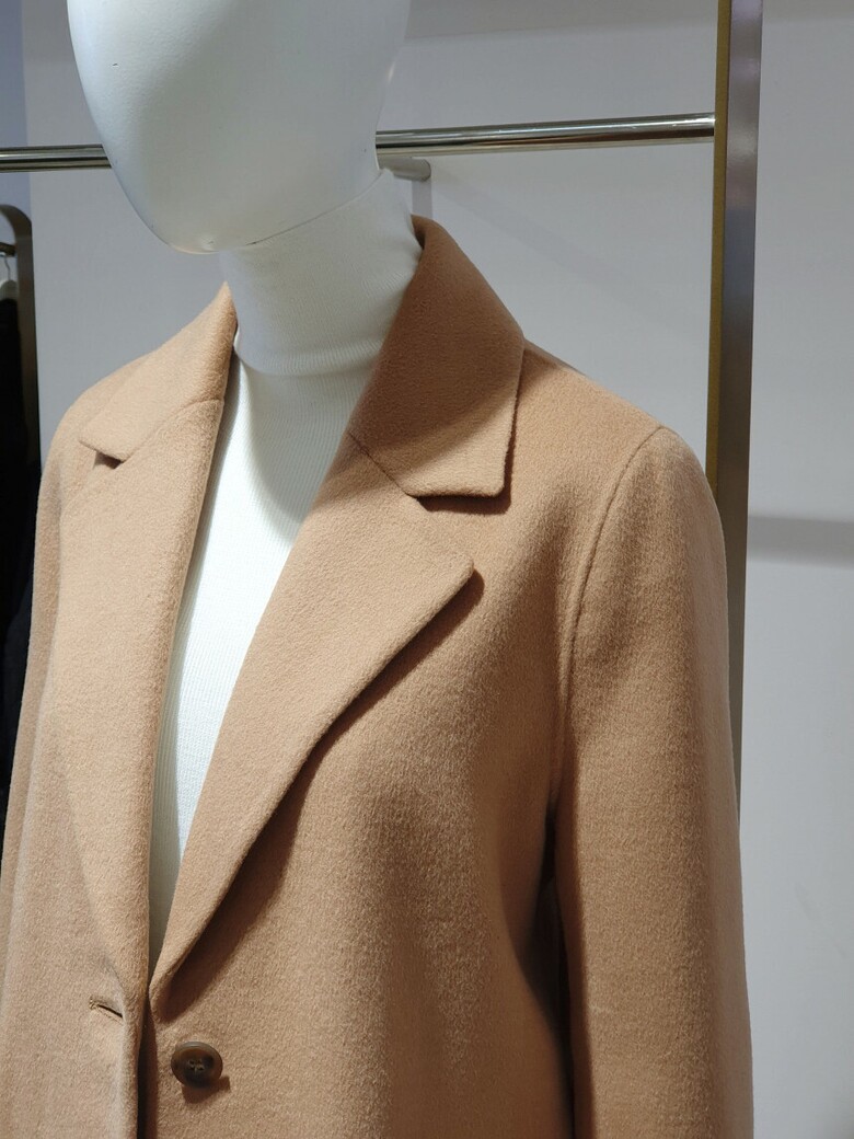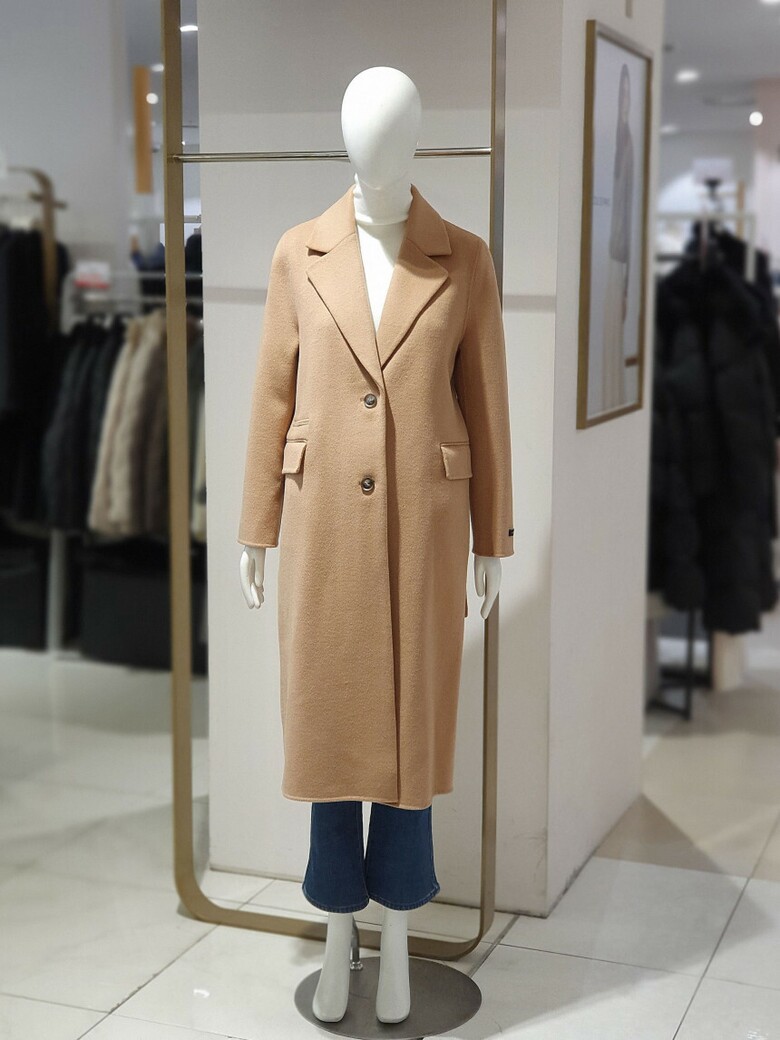 모던한 무드의 싱글 투 버튼 핸드메이드 코트입니다.