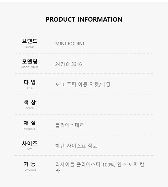 미니로디니 2471013316 (Dog emb puffer jacket) 도그 푸퍼 아동 자켓