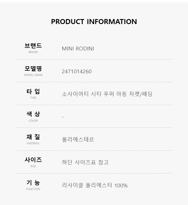 미니로디니 2471014260 (society city puffer jacket) 소사이어티 시티 푸퍼 아동 자켓