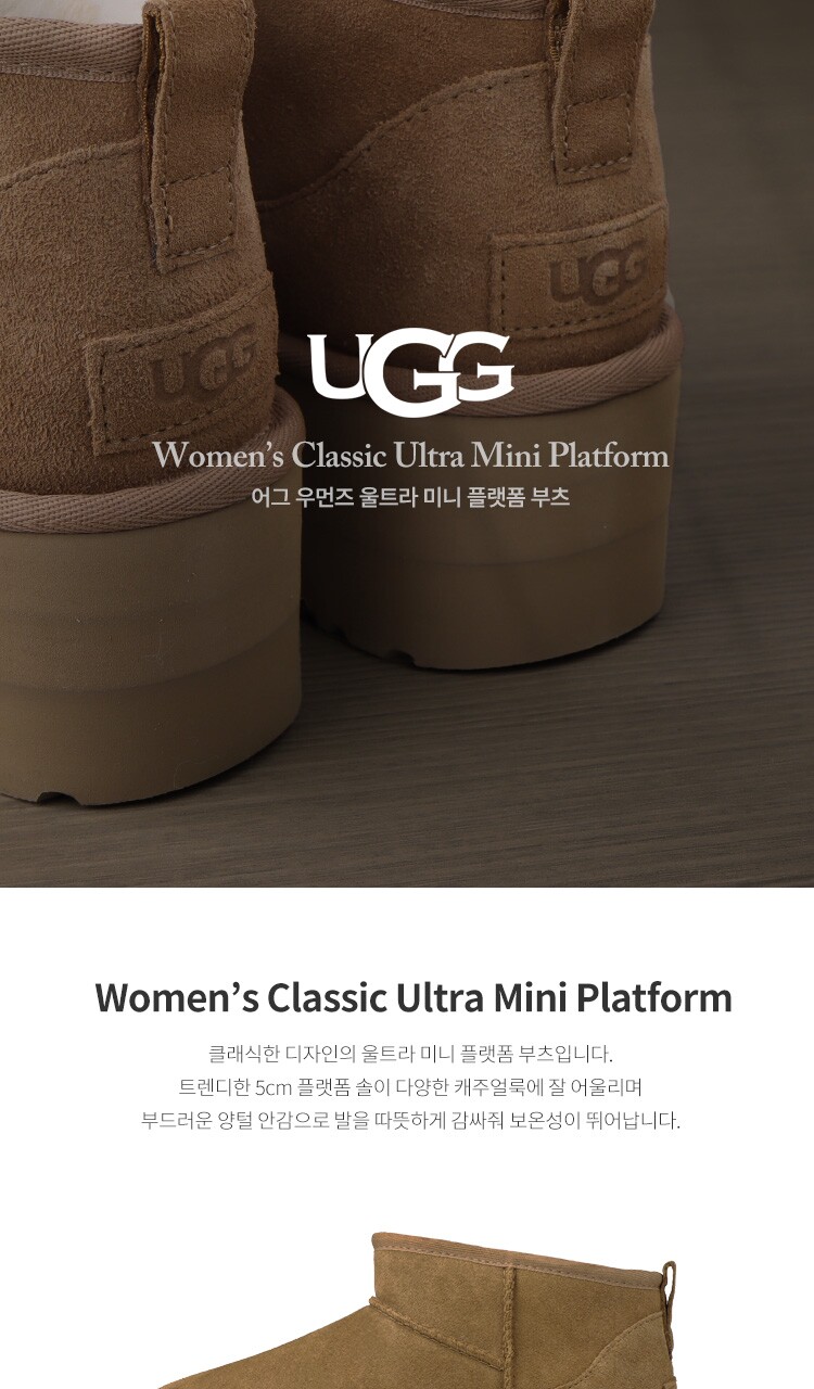 미국 어그 여성 클래식 울트라 미니 플랫폼 부츠 체스트넛 겨울 양털(1135092 CHE)