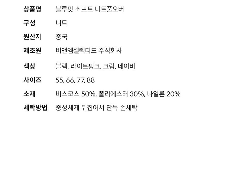 1. 제품 소재 (섬유의 조성 또는 혼용률을 백분율로 표시, 기능성인 경우 성적서 또는 허가서) 비스코스 50%, 폴리에스터 30%, 나일론 20%