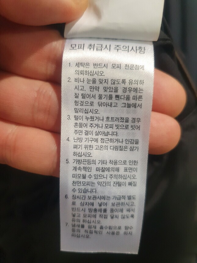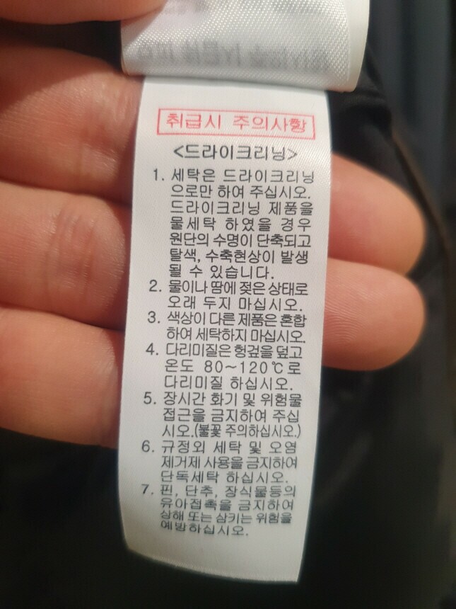 6. 세탁방법 및 취급시 주의사항 드라이크리닝