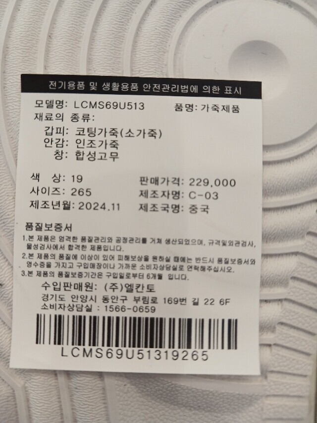 상품불량에 의한 반품, A/S, 품질보증 및 피해보상 등에 관한 사항은 소비자 분쟁해결기준(공정거래위원회 고시) 구매자가 미성년자인 경우에는 상품 구입시 법정대리인이 동의하지 아니하면 미성년자 본인 또는 법정대리인이 구매취소 할 수 있습니다. |