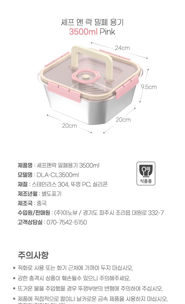 [디라이프] 셰프앤락 밀폐 용기 3500ml