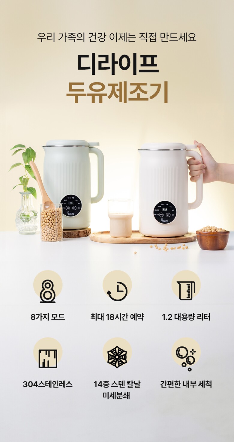 [디라이프] 대용량 1200ml 두유제조기