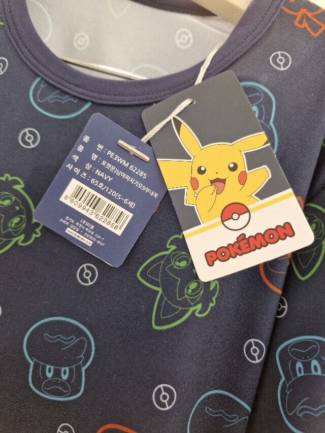 부드러운 피치기모 재질의 겨울내복으로 남자아이들이 좋아하는 포켓몬캐릭터 제품입니다.