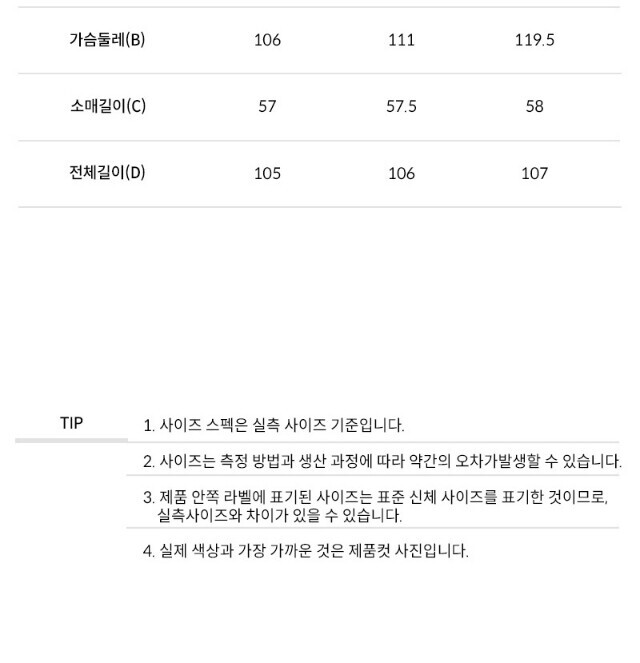 • 처음 배송된 상품상태와 다를 경우(세탁/착용 후 외출하신 경우) 반품이 불가합니다.