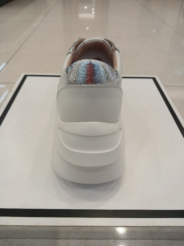 굽높이 약6cm의 높이에 천연소가죽소재를 사용하여 특수공법으로 가공처리하여 제작된 여성 키높이 어글리스니커즈입니다
