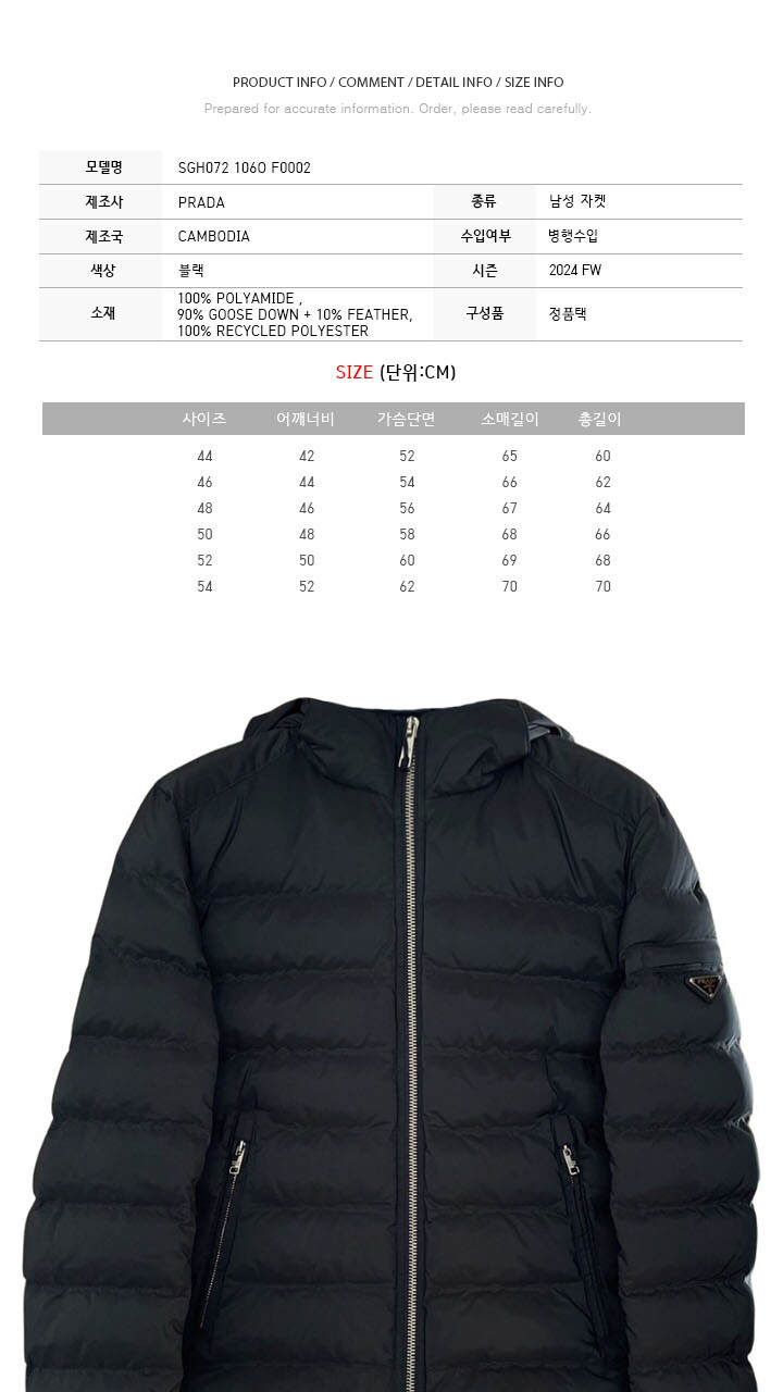 프라다 24FW 후드 패딩 자켓 블랙 SGH072 106O F0002