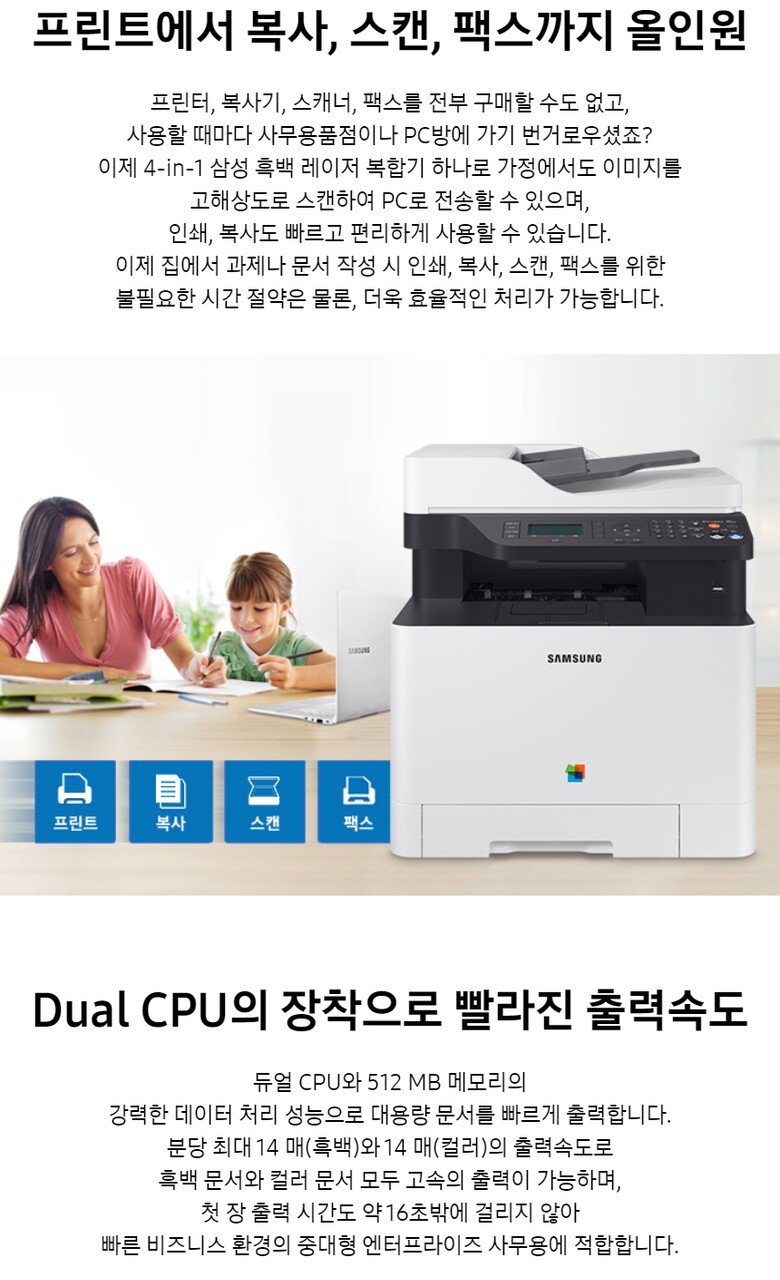 SL-C1460FW 토너포함 컬러레이저복합기 (인쇄+복사+스캔+팩스+유무선)