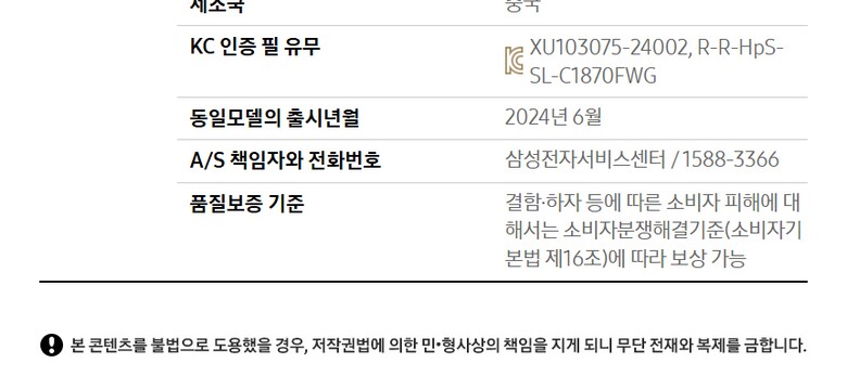 11. A/S책임자와전화번호 | 삼성전자, 1588-3366 |