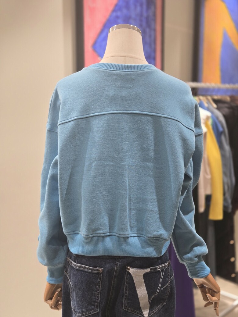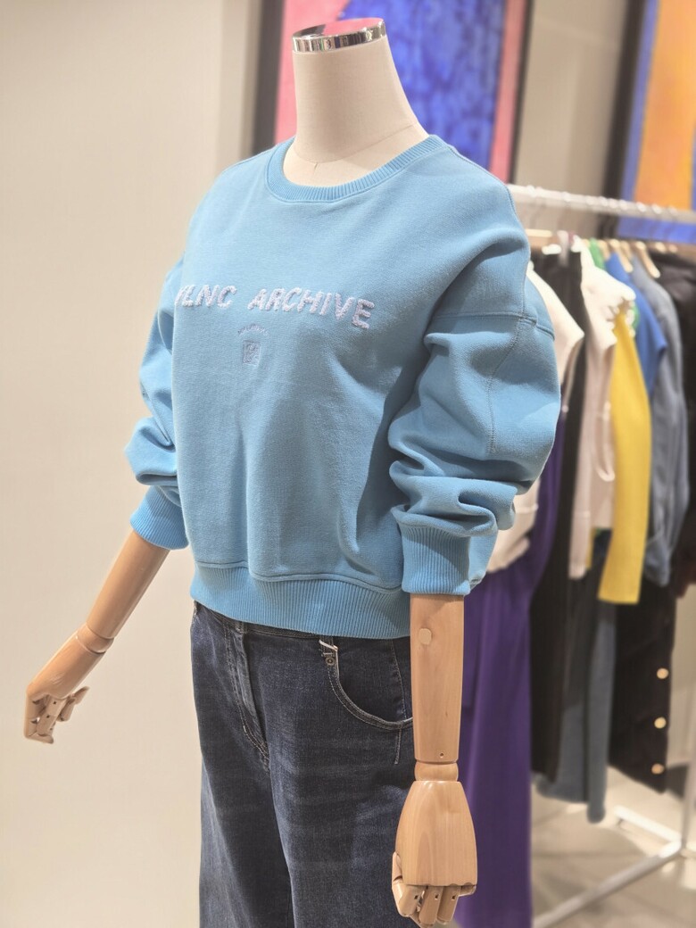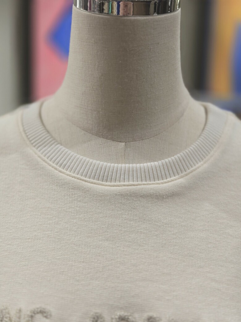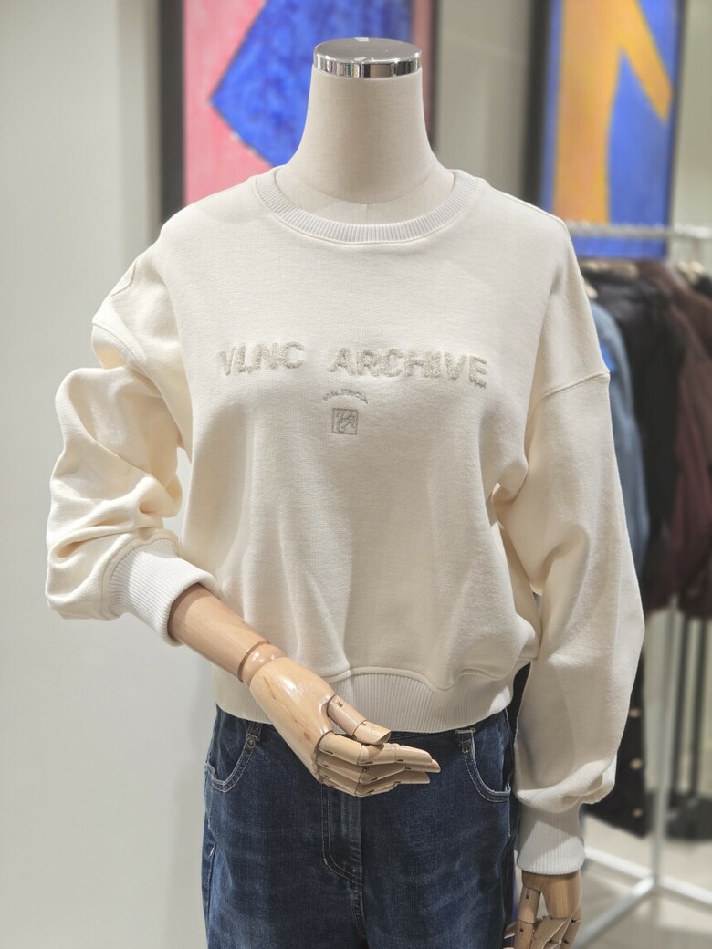 라운드넥에 앞면레터링 소재감 톡톡한 허리덮는기장감