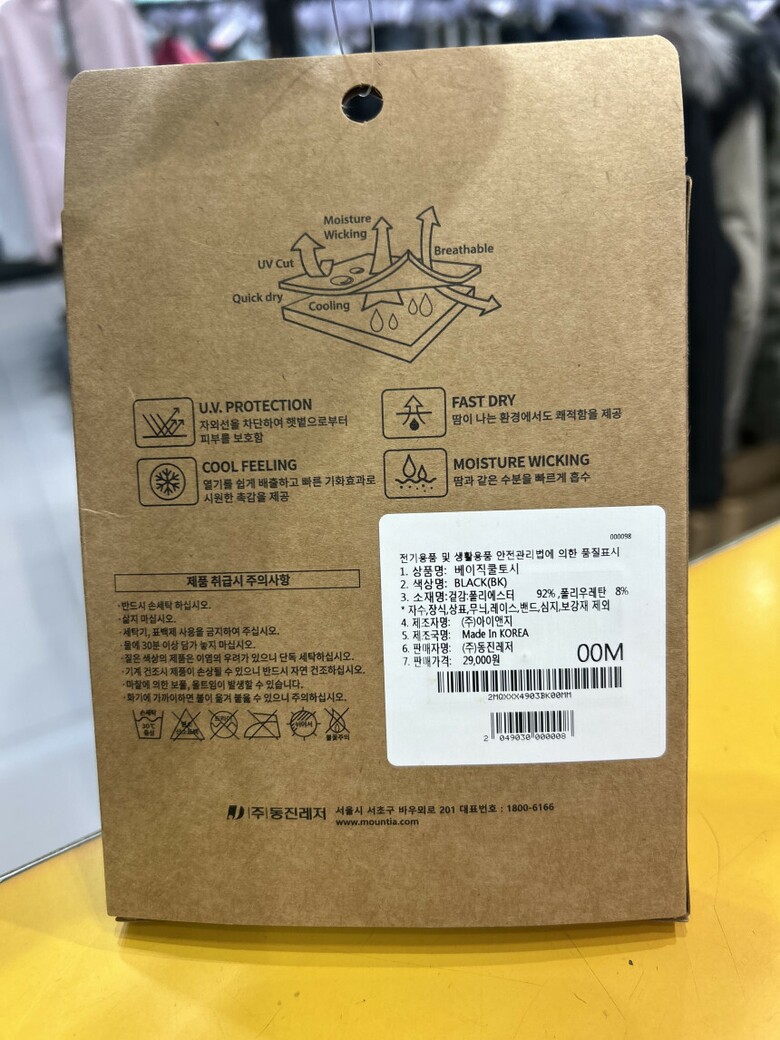 | 2. 소재 | 겉감 : 폴리에스터 92%, 폴리우레탄 8% |