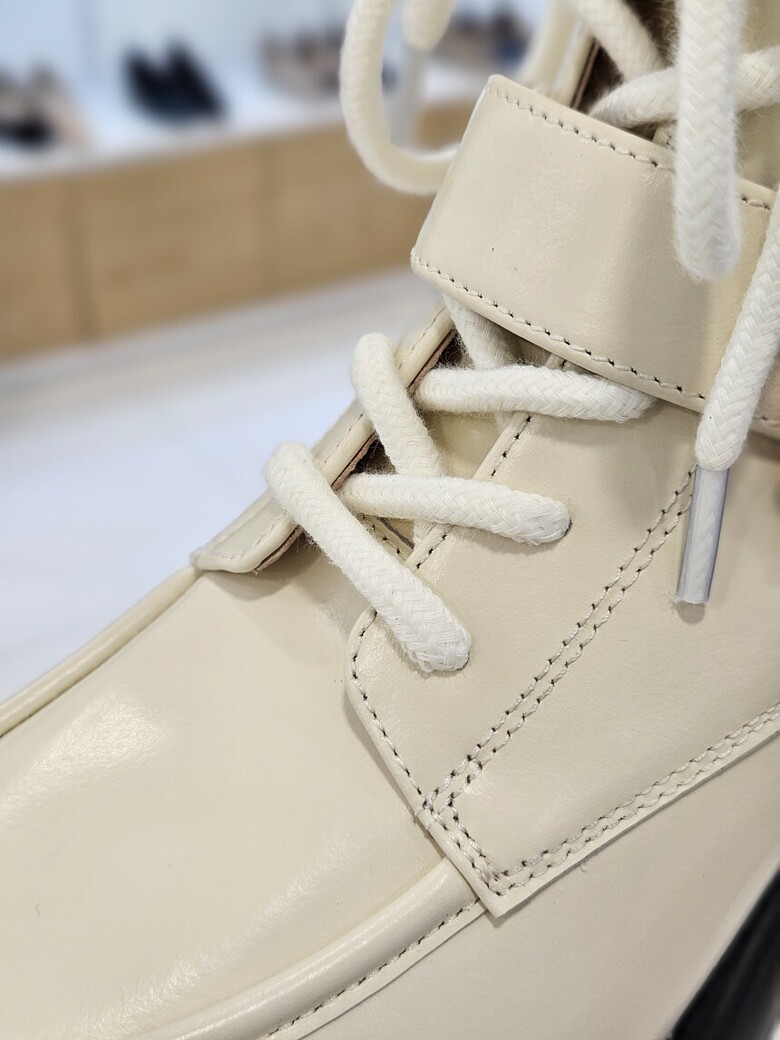 광택감이 있는 소가죽으로 제작되어 깔끔한 느낌이 물씬 나는 워커 앵클부츠