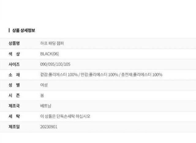 | 1. 제품 소재 (섬유의 조성 또는 혼용률을 백분율로 표시, 기능성인 경우 성적서 또는 허가서) | 상품상세참조 |