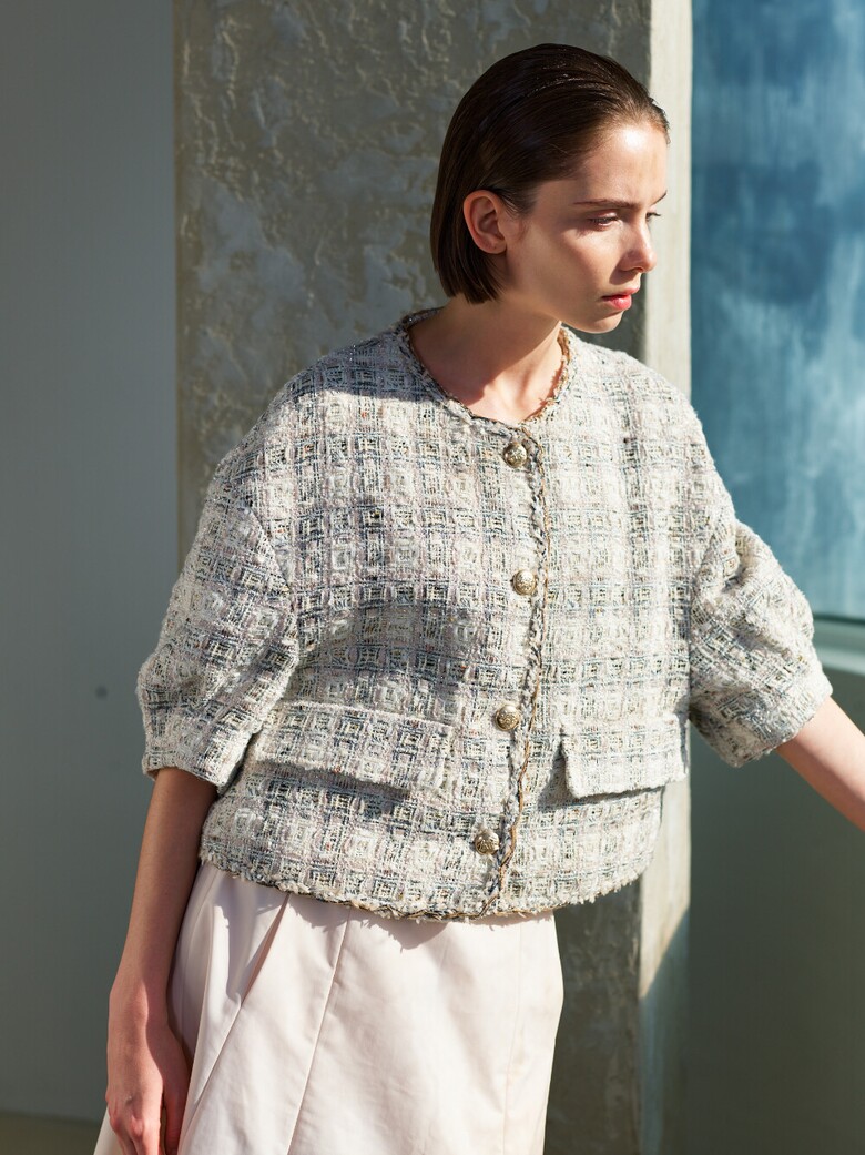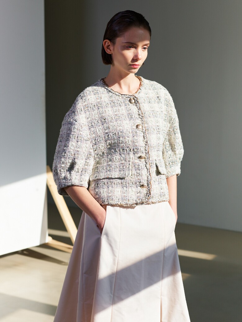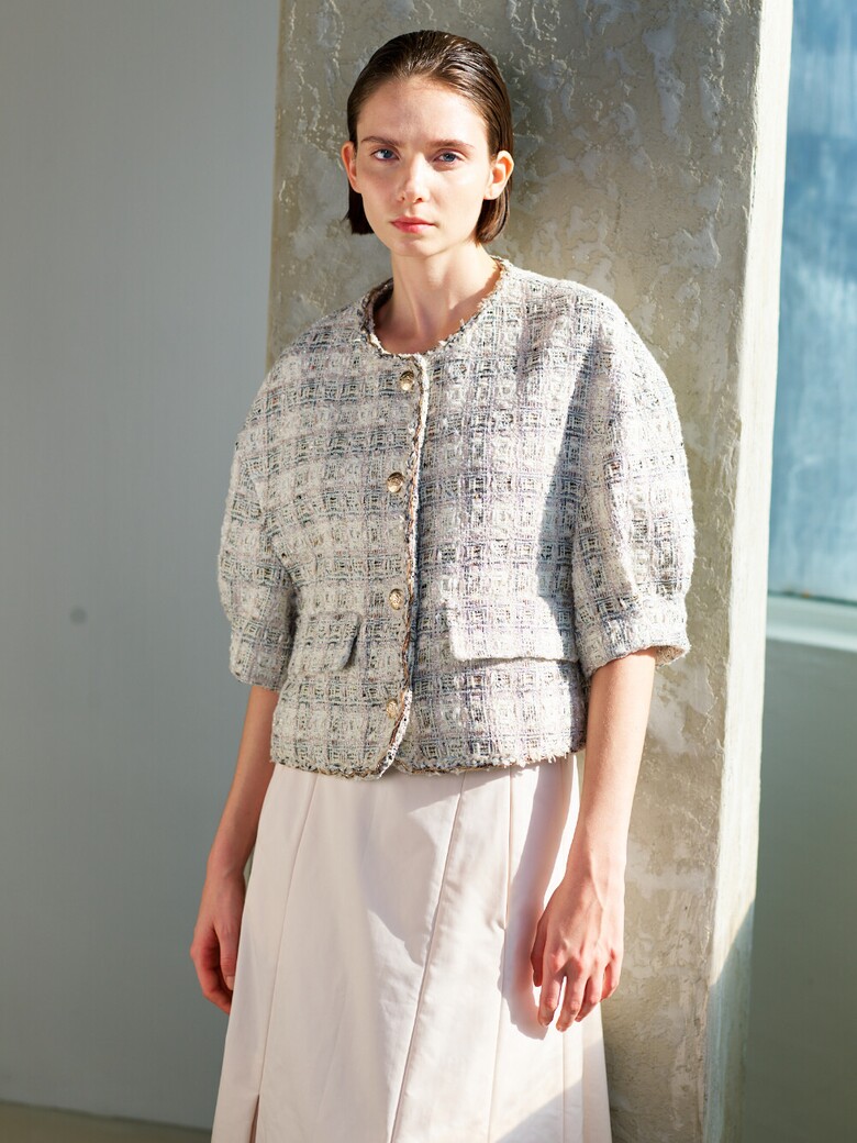 [발렌시아]싱글버튼 퍼프소매 트위드 자켓 241MJ13