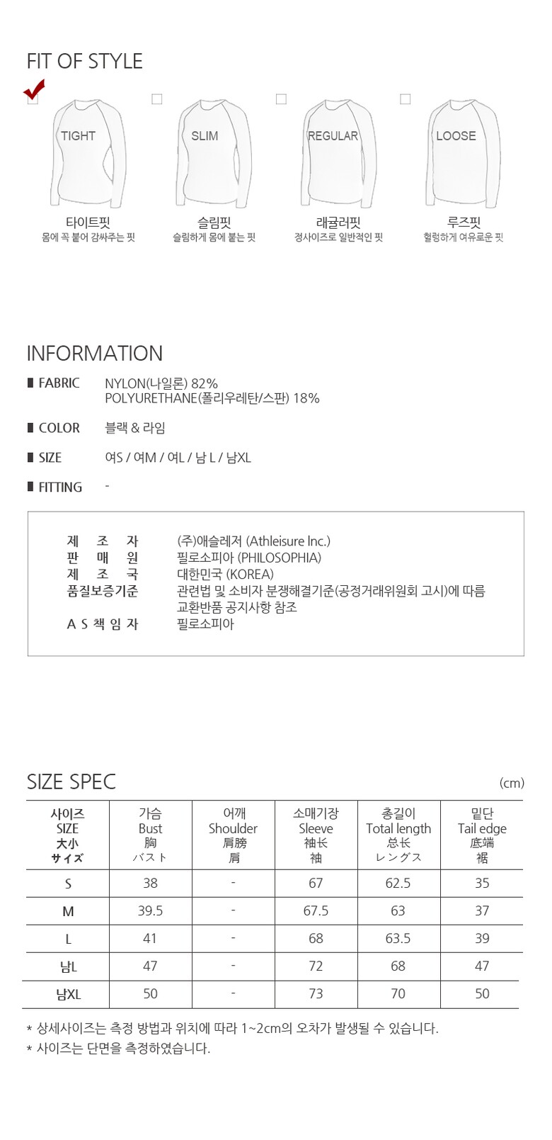 | 3. 치수 | 여성S/여성M/여성L/남성L/남성XL |