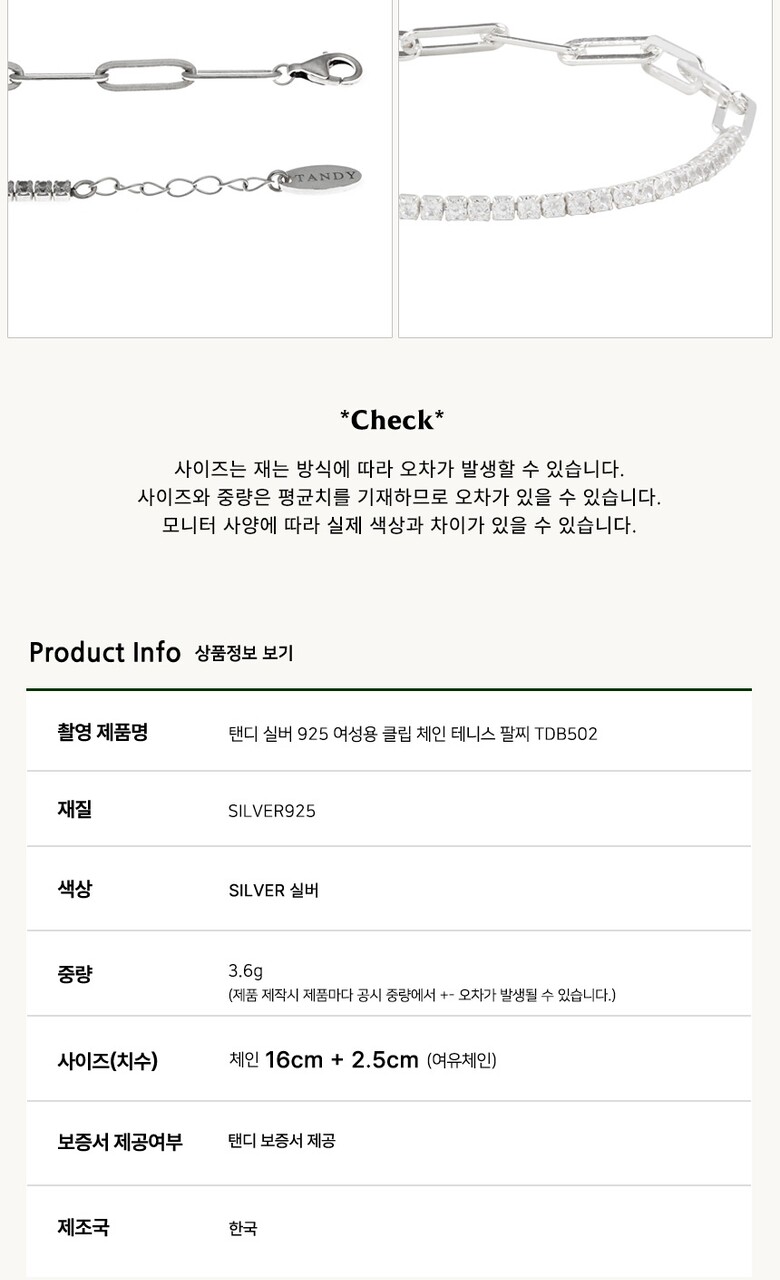 [TANDY] 탠디 실버925 여성용 클립 체인 테니스 팔찌 TDB502