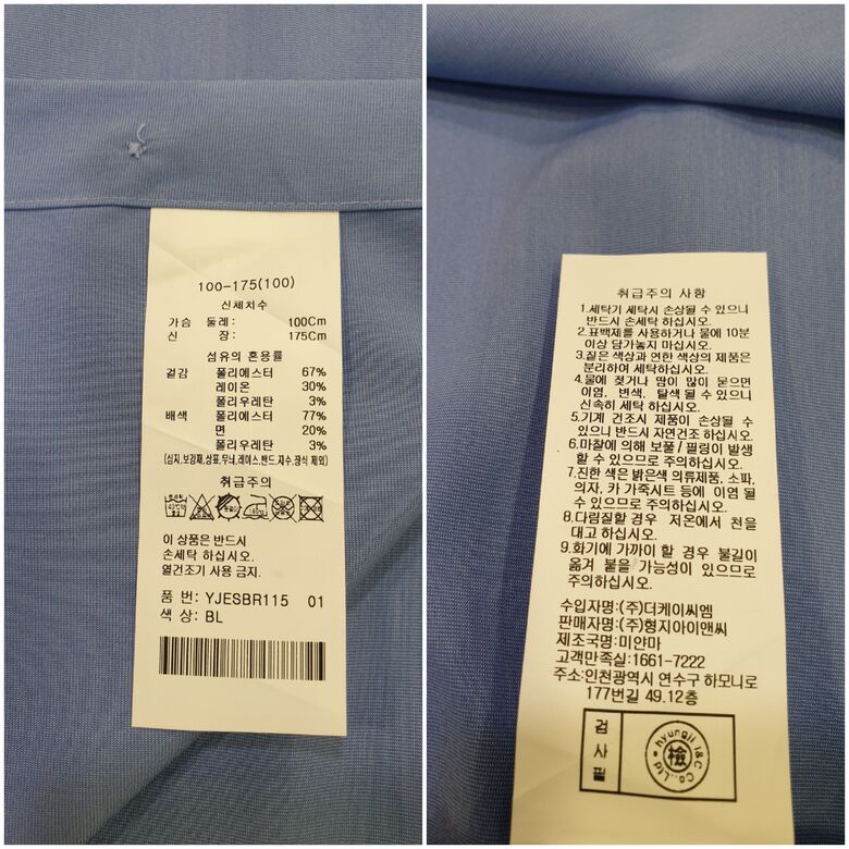 | 6. 세탁방법 및 취급시 주의사항 | 상품상세참조 |