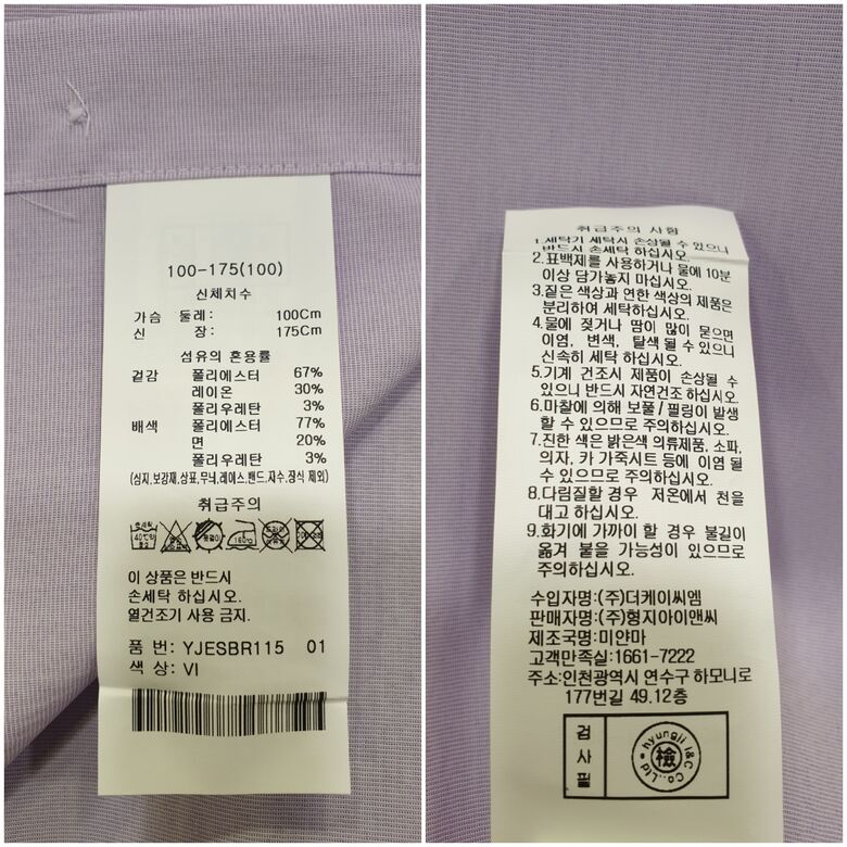 | 6. 세탁방법 및 취급시 주의사항 | 상품상세참조 |