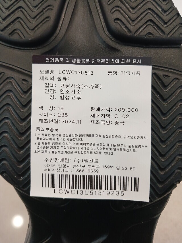 | 1. 제품 소재 (운동화인 경우에는 겉감, 안감을 구분하여 표시) | 상품상세참조 |