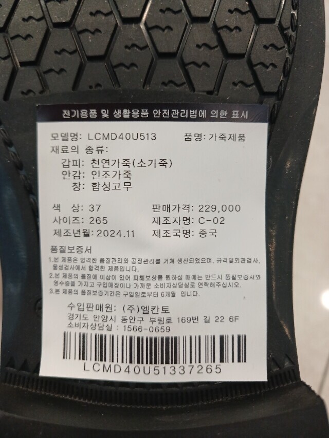 | 1. 제품 소재 (운동화인 경우에는 겉감, 안감을 구분하여 표시) | 상품상세참조 |