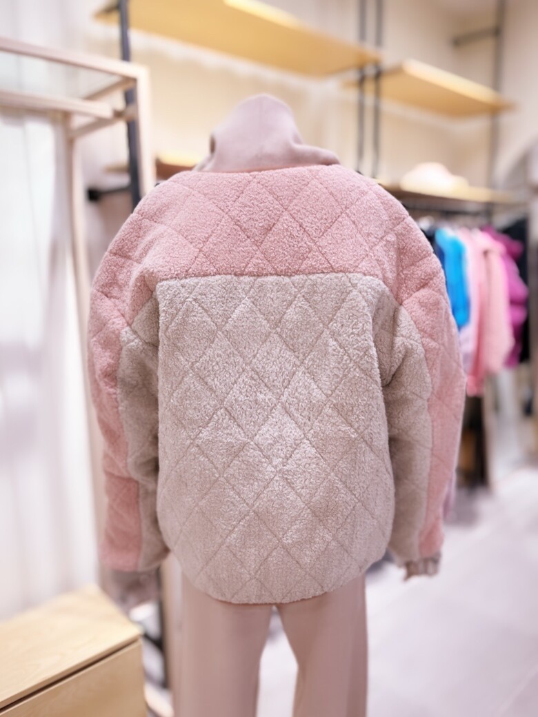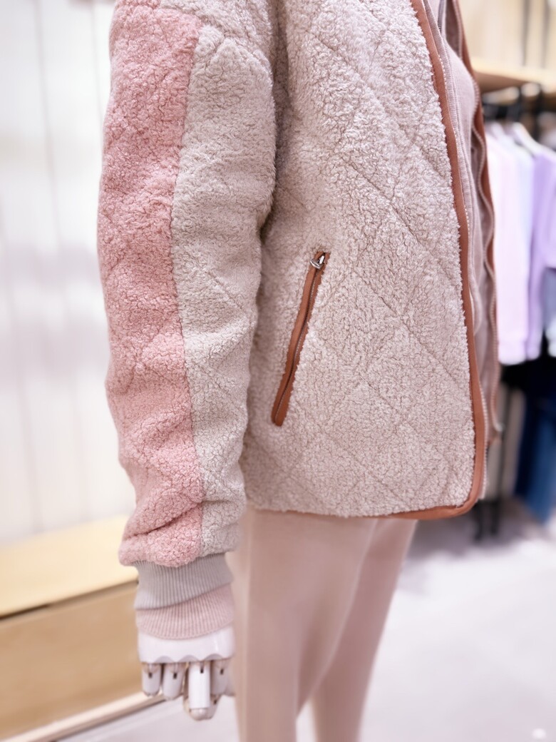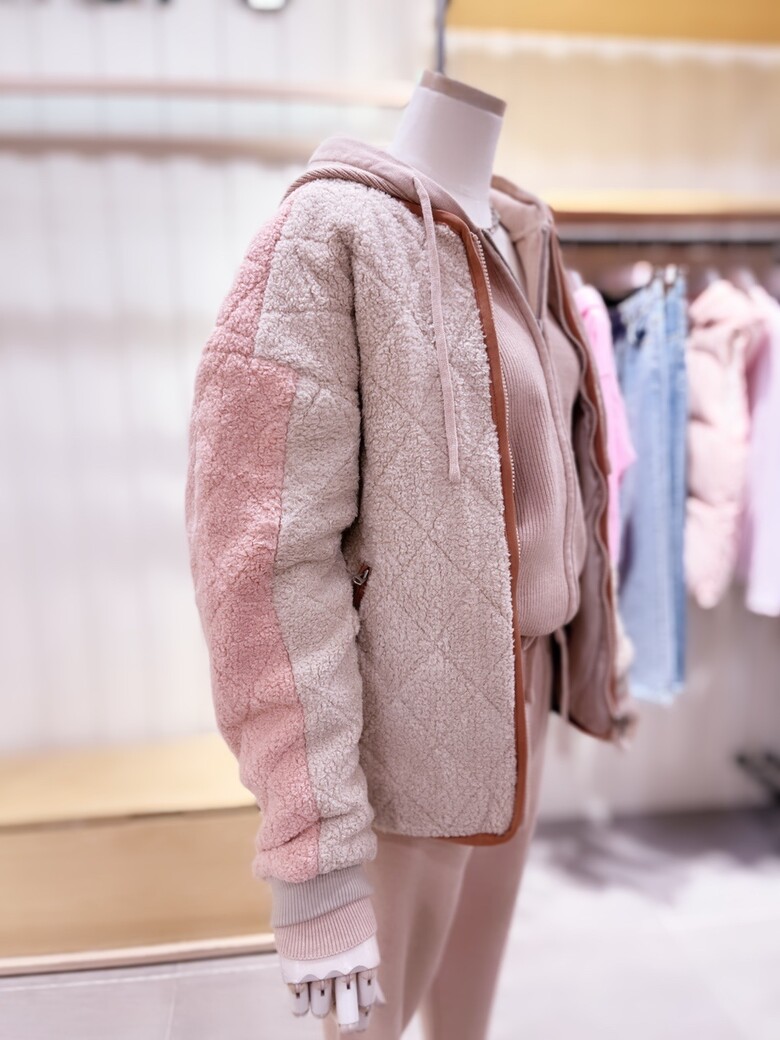 " 여성스러운무드의라운드 점퍼를 소개해드려요 "?사랑스럽고 화사한핑크와 은은한 베이지가 믹스된 컬러가 너무 예쁘죠??카라없이 라운드넥의? 깔끔한 디자인에여성스러운무드의 집업 점퍼인데요"