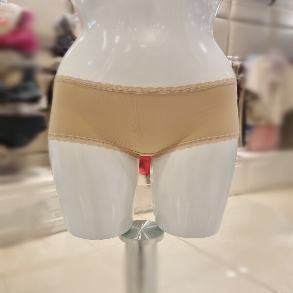 가볍고 부드러운 원단을 사용한 테이핑레이스 사각팬티. 힙자국 표시없이 편안하며 임파선 눌림없는 팬티