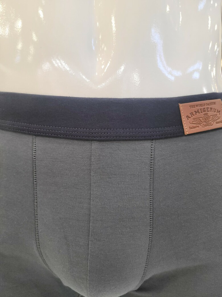 네이비 색상과 그레이 색상을 교차로 몸판과 허릿단에 매치하여