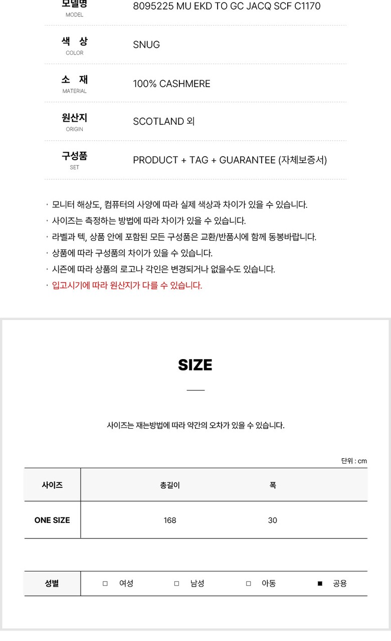 (버버리) 8095225 MU EKD TO GC JACQ SCF C1170 FW24 공용 리버시블 체크 머플러