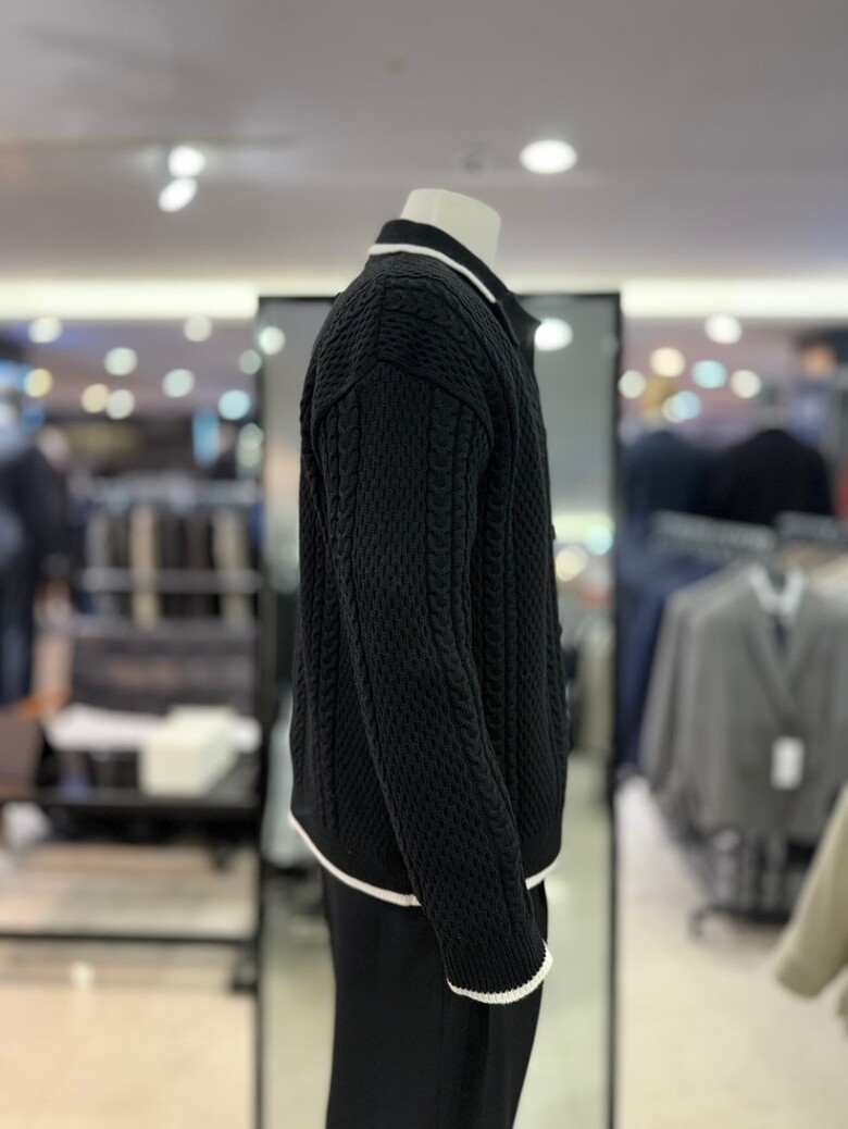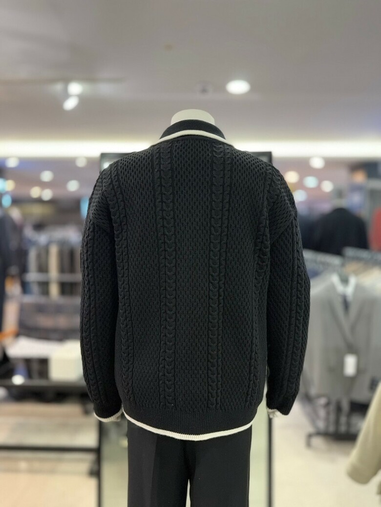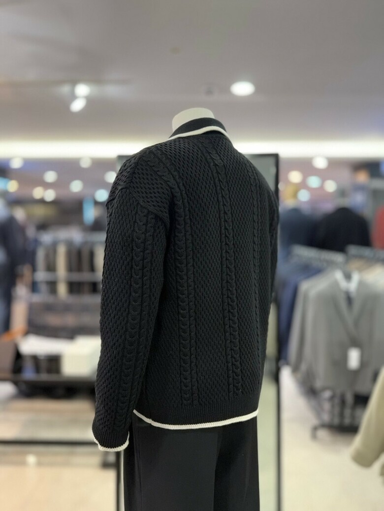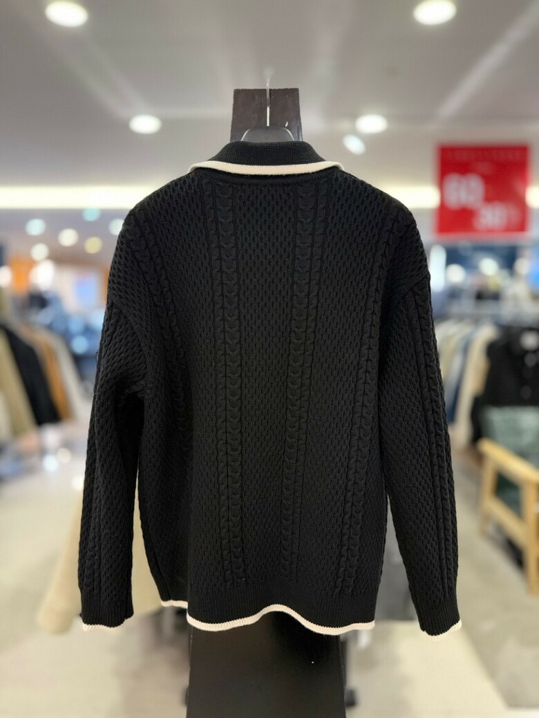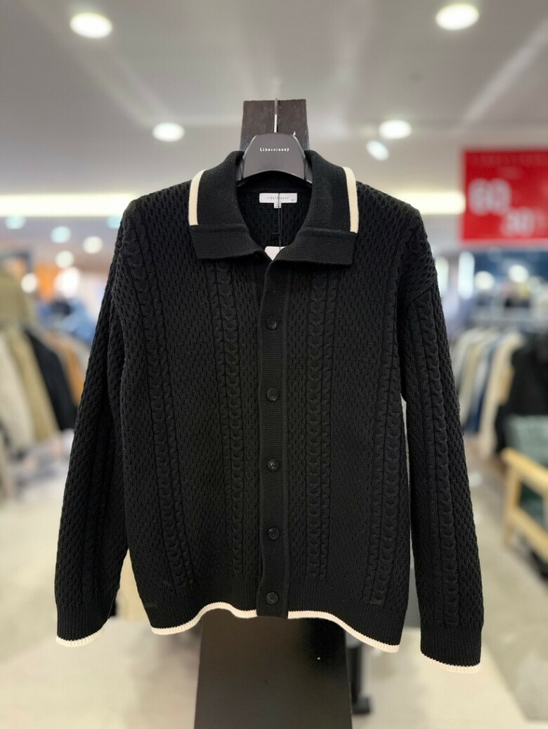 리버클래시 블랙 꽈배기 짜임 배색 울 카라 가디건 LKW51408