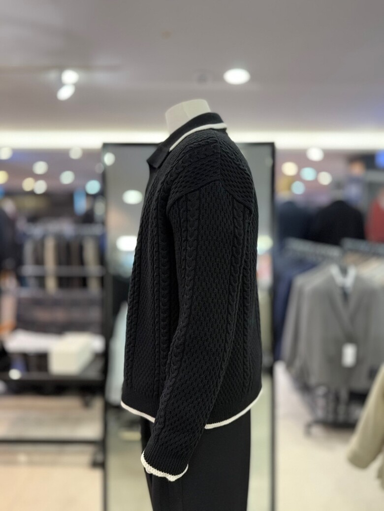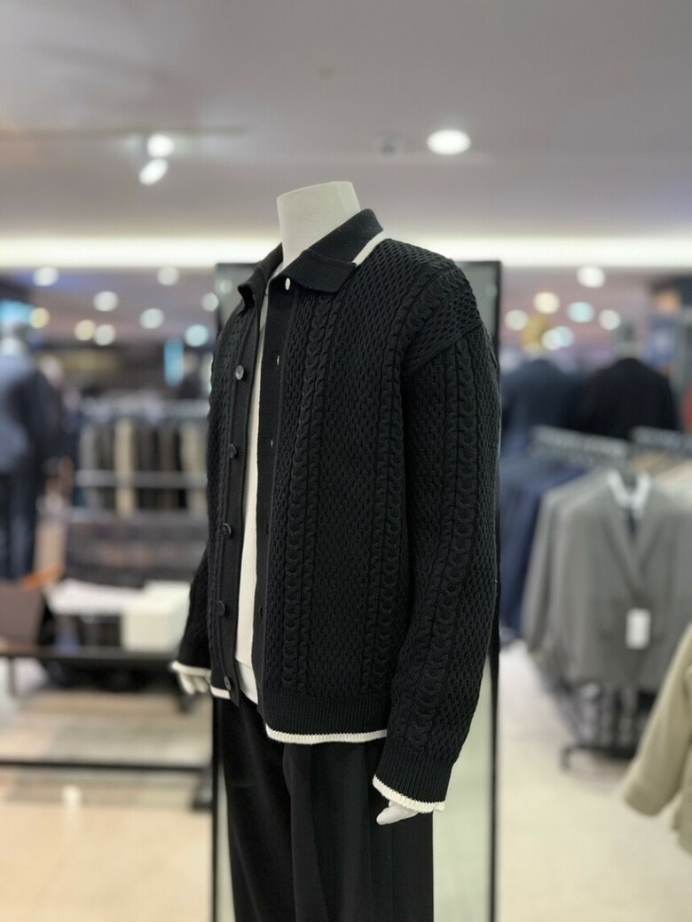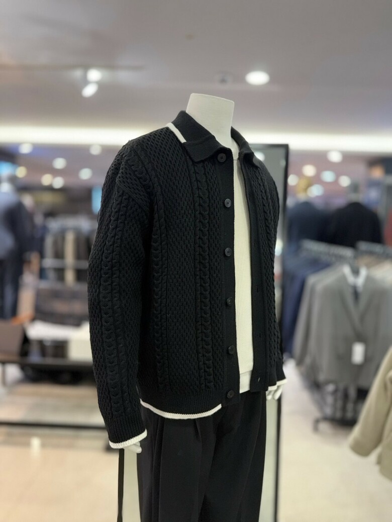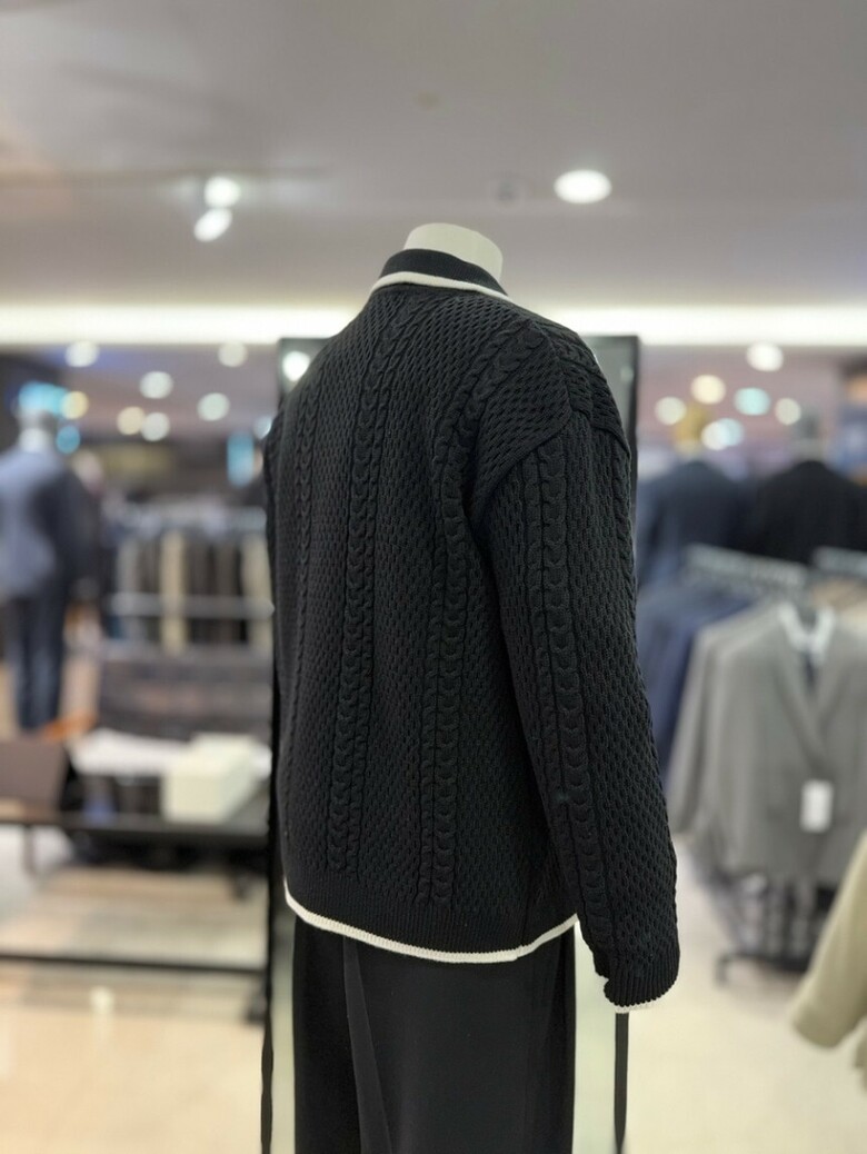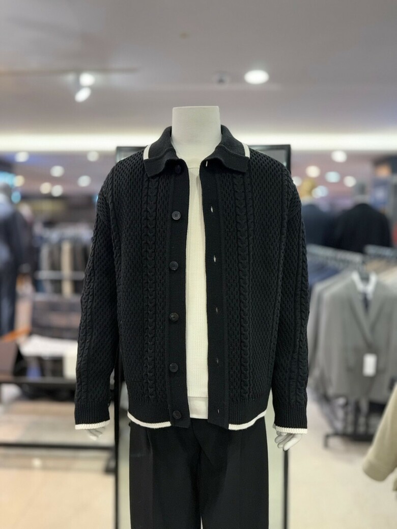 리버클래시 블랙 꽈배기 짜임 배색 울 카라 가디건 LKW51408