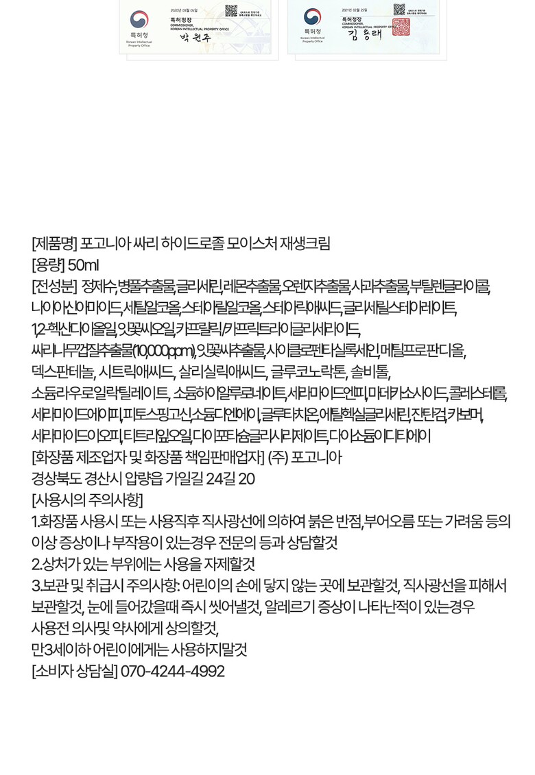 8. 기능성 화장품의 경우 화장품법에 따른 식품의약품안전청 심사 필 유무 상세페이지 참조