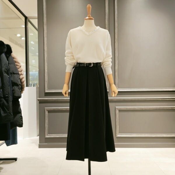 A51WSK401_뒷밴딩 핀턱 주름 스커트