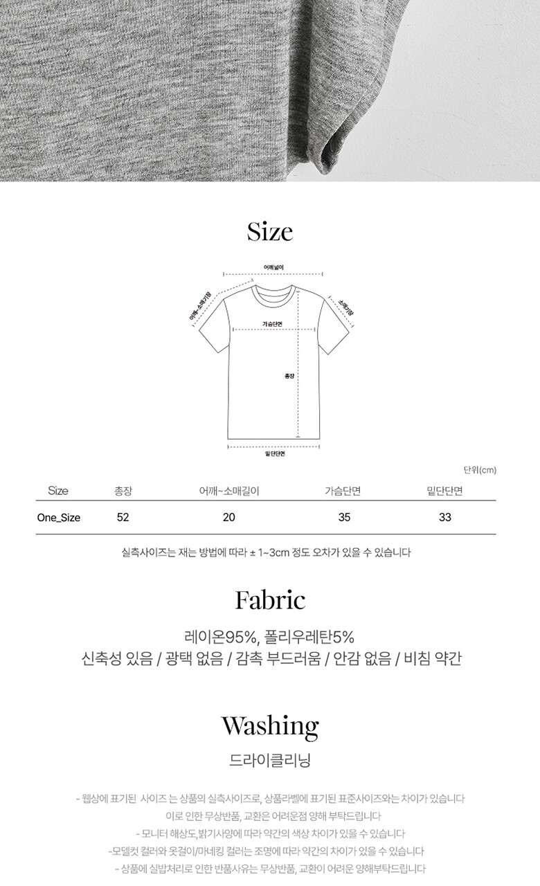 1. 제품 소재 (섬유의 조성 또는 혼용률을 백분율로 표시, 기능성인 경우 성적서 또는 허가서) | 레이온95%,폴리우레탄5% |
