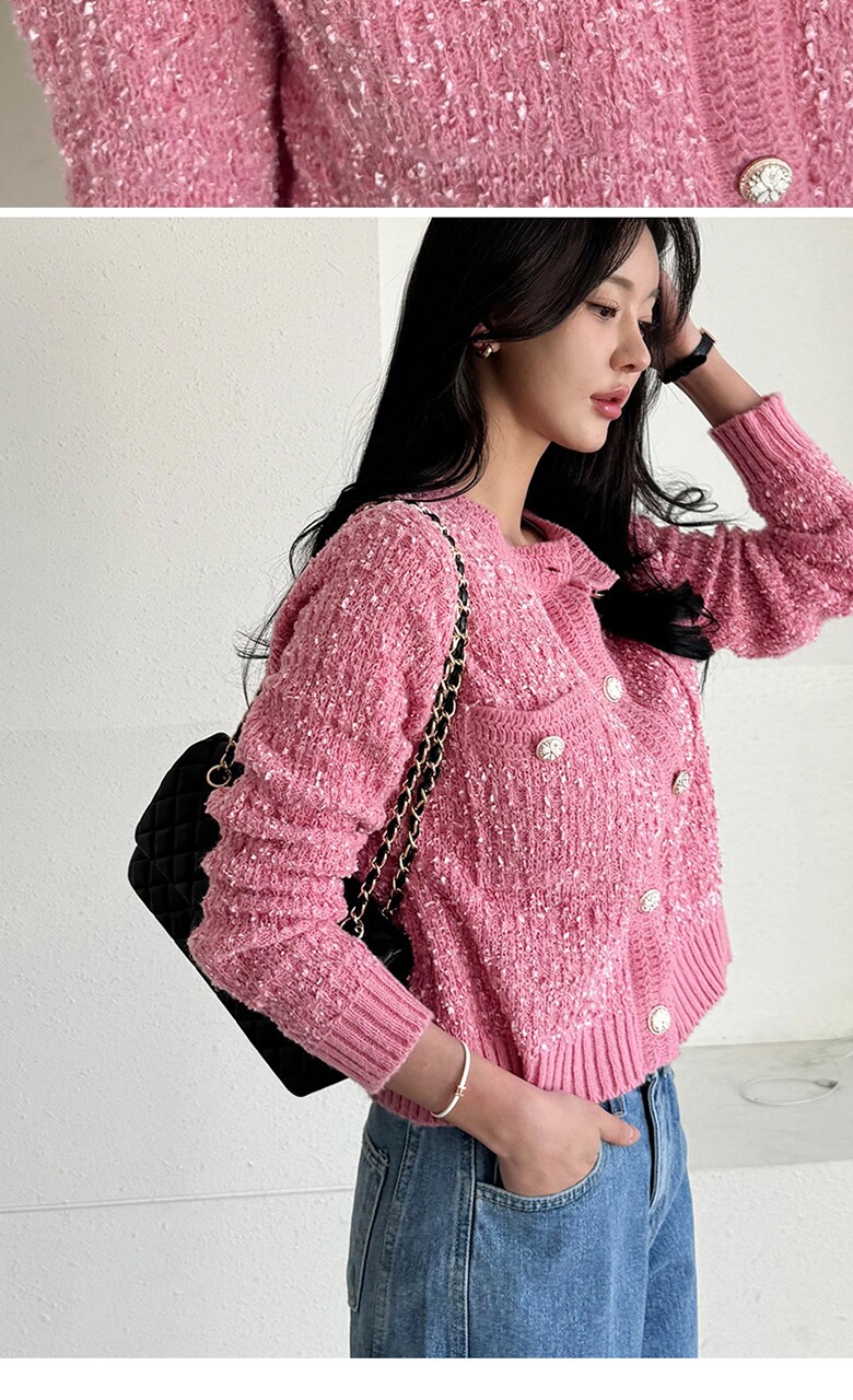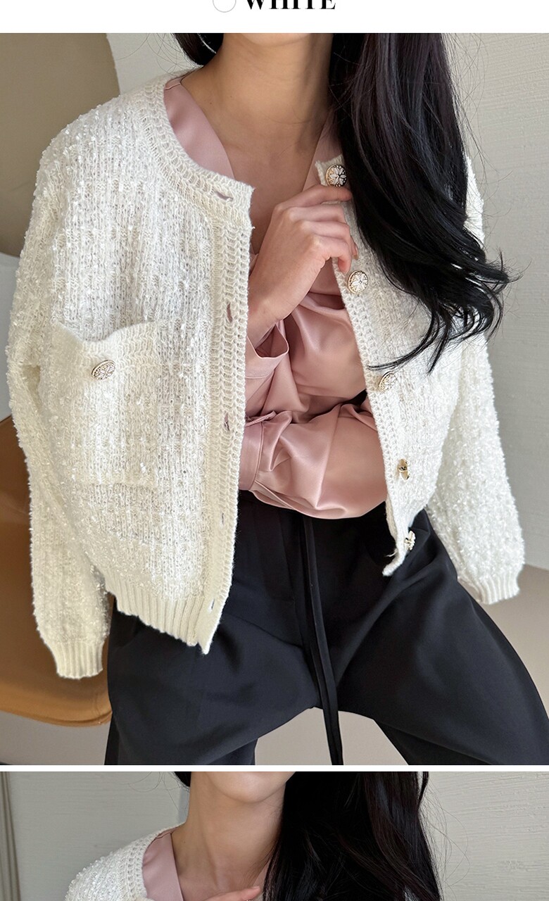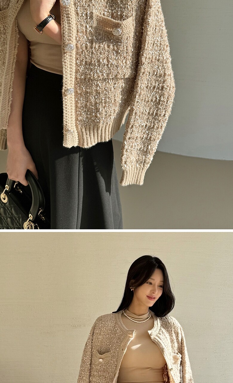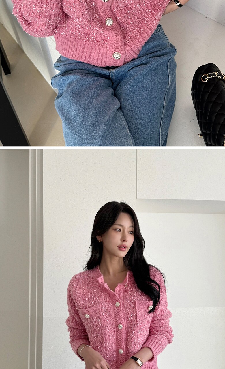 보석버튼 부클 트위드 가디건_M2501CD002A