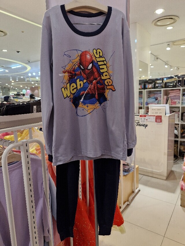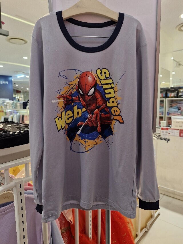 아이들이 좋아하는 스파이더맨 캐릭터가 그려진 부드러운 피치기모 재질의 간절기 상하복 입니다.