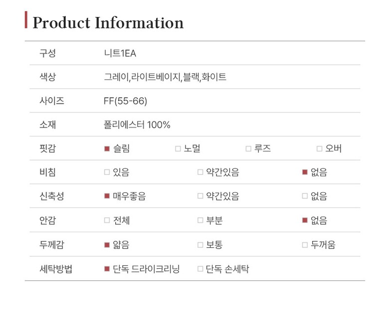 2. 색상 | 그레이,라이트베이지,블랙,화이트 |
