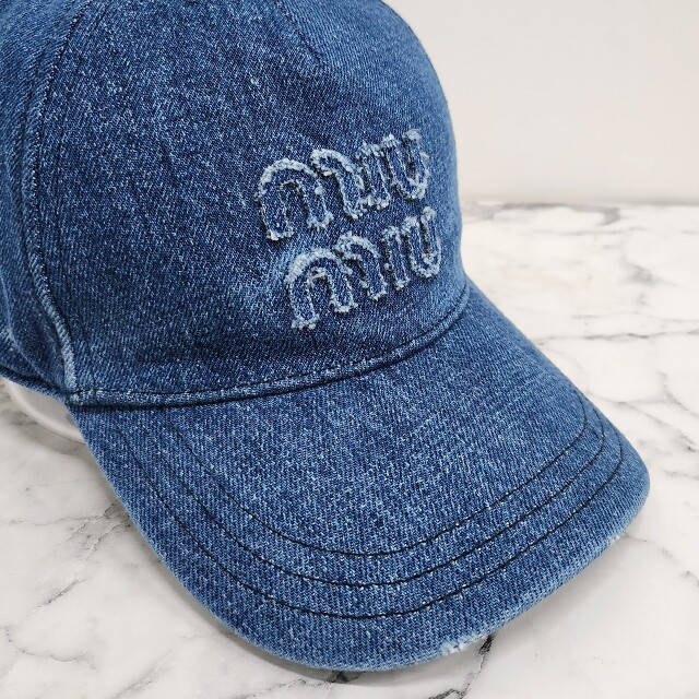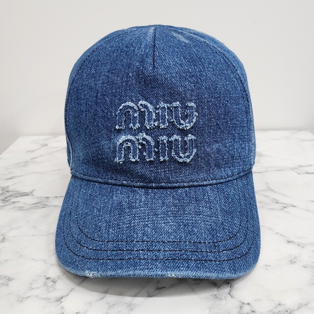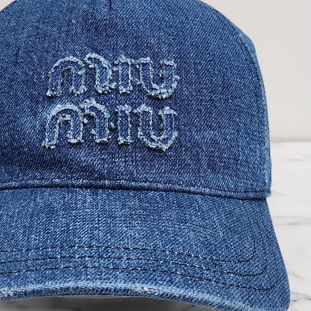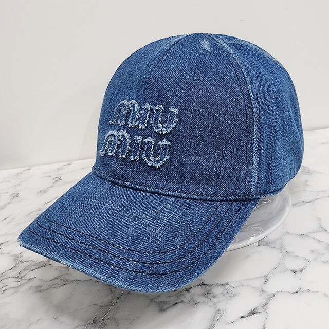 [명품] 25SS 미우 미우 토널 자수 로고 데님 볼캡 모자 / 블루 5HC179 2CL4 F0008