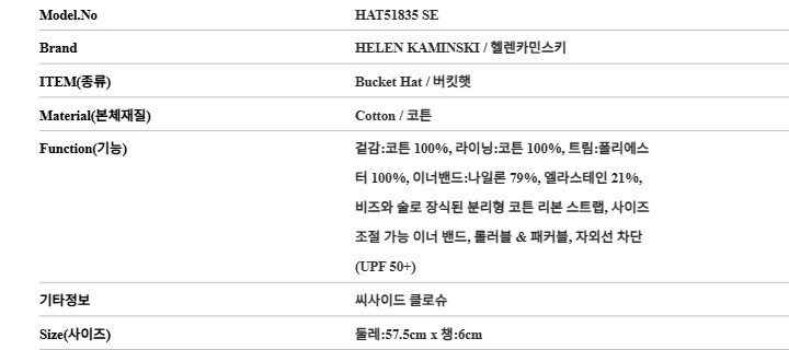 | 3. 치수 | SIZE - 둘레:57.5cmx챙:6cm |